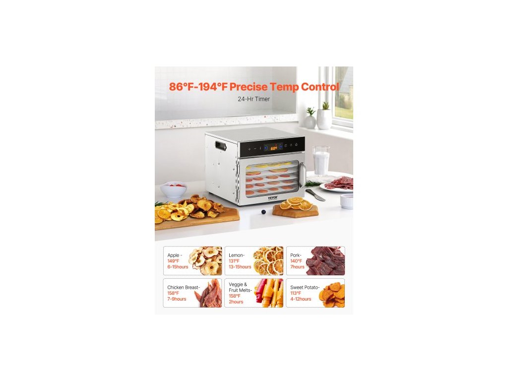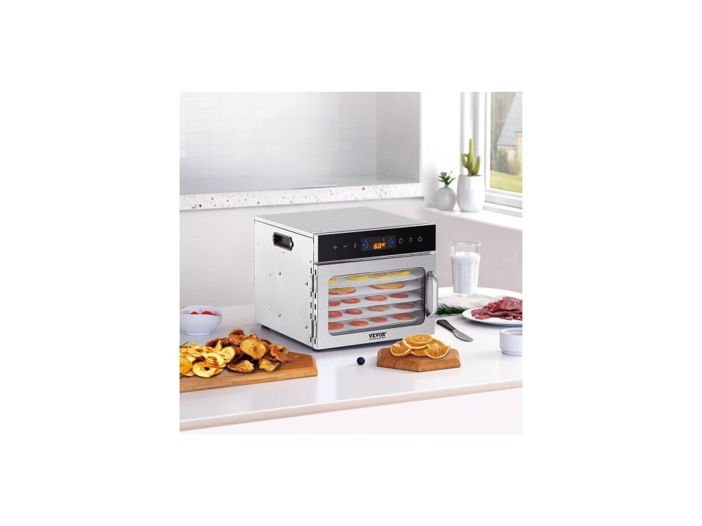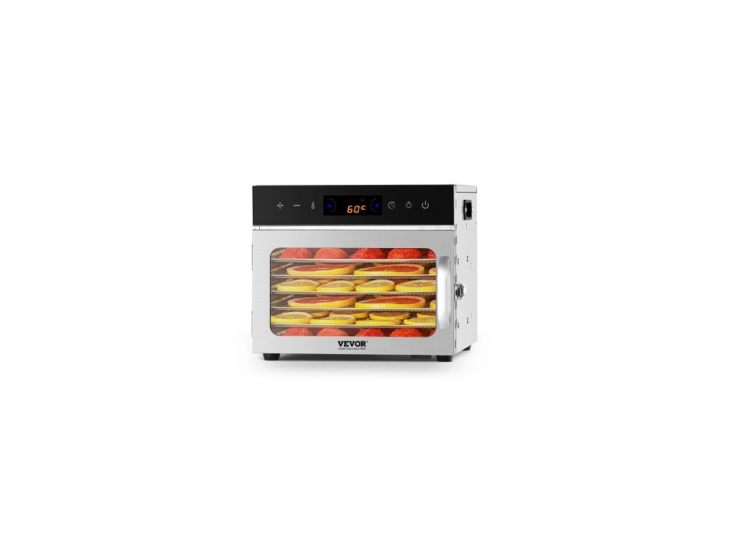 Sušička potravin , 6 nerezových táců, elektrická sušička potravin 400 W s nastavitelnou teplotou a 24hodinovým časovačem, lyofilizátor na sušené maso, maso, ovoce, zeleninu, bylinky, psí pamlsky