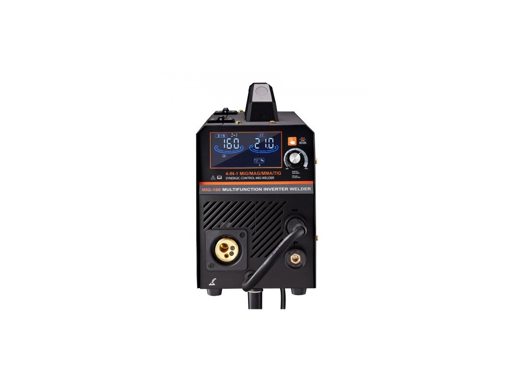 Svářečka MIG, synergický MIG svářecí stroj 160A, 4v1 plynový MIG/tavný jádrový MIG/obalený/lift TIG multiprocesní svářecí stroj s IGBT invertorovou technologií a LCD displejemVysoký svařovací výkon