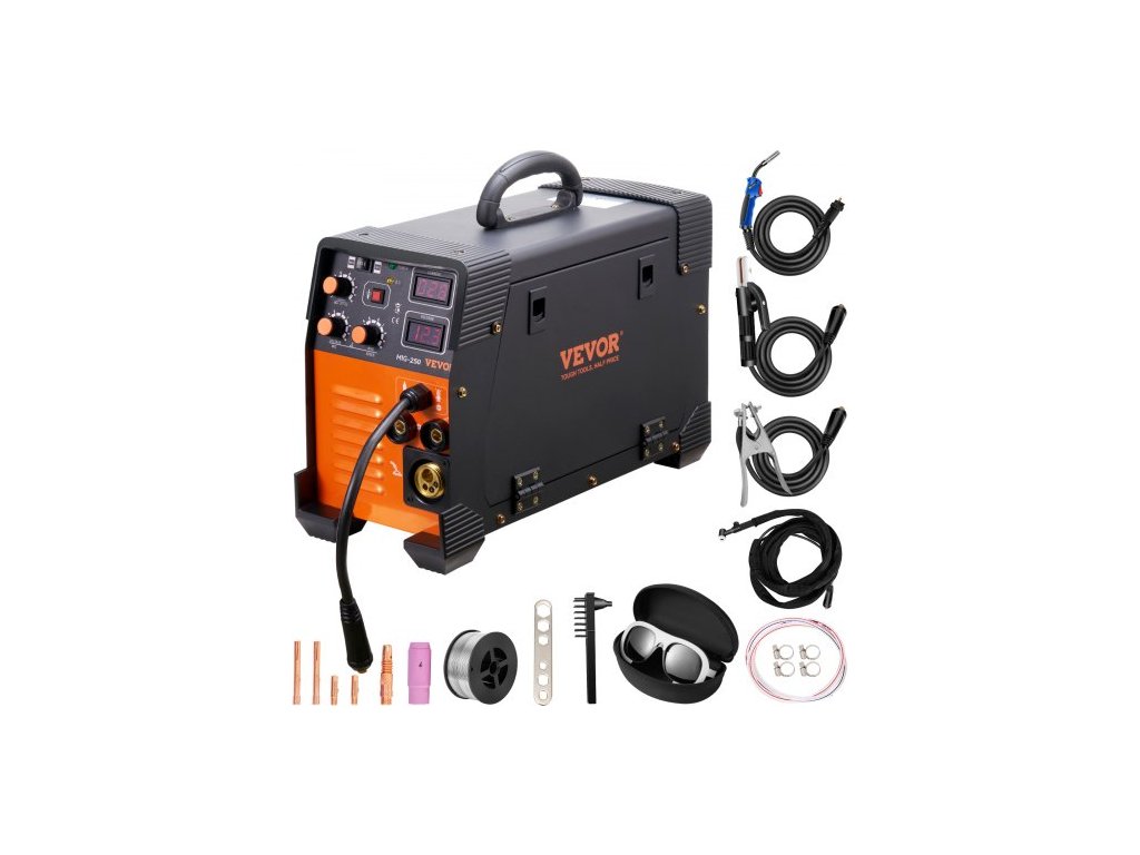 Svářečka MIG 250 A MIG TIG oblouková svářečka 3 v 1, svářecí stroj, 220V TIG svářečka, lift-arc svářečka, MMA obalená elektroda, IGBT DC invertorová svářečka, digitální displej, kombinovaný svářecí stroj, IGBT invertor, plněný drát, svářečka 3 v 1, vestavěná ochranná funkce, miniaturní velikost a nízká hmotnost, široké použití, rozsah proudu: 30-250A, jmenovitý příkon: 5,6KVA, hmotnost drátu: 2,2 libry, napětí: 220V, model: MIG-250, typ svářečky: MIG/MMA/TIG, hmotnost výrobku: 18,5 libry / 8,4 kg, stupeň krytí: IP21S, tloušťka drátu: 0,031'' a 0,039'' / 0,8 mm a 1 mm,Rozměry výrobku: 18,1 x 7,5 x 13 palců / 46 x 19 x 33 cm,Rychlost drátu: 2,2–12 m/minDoplňkové parametry