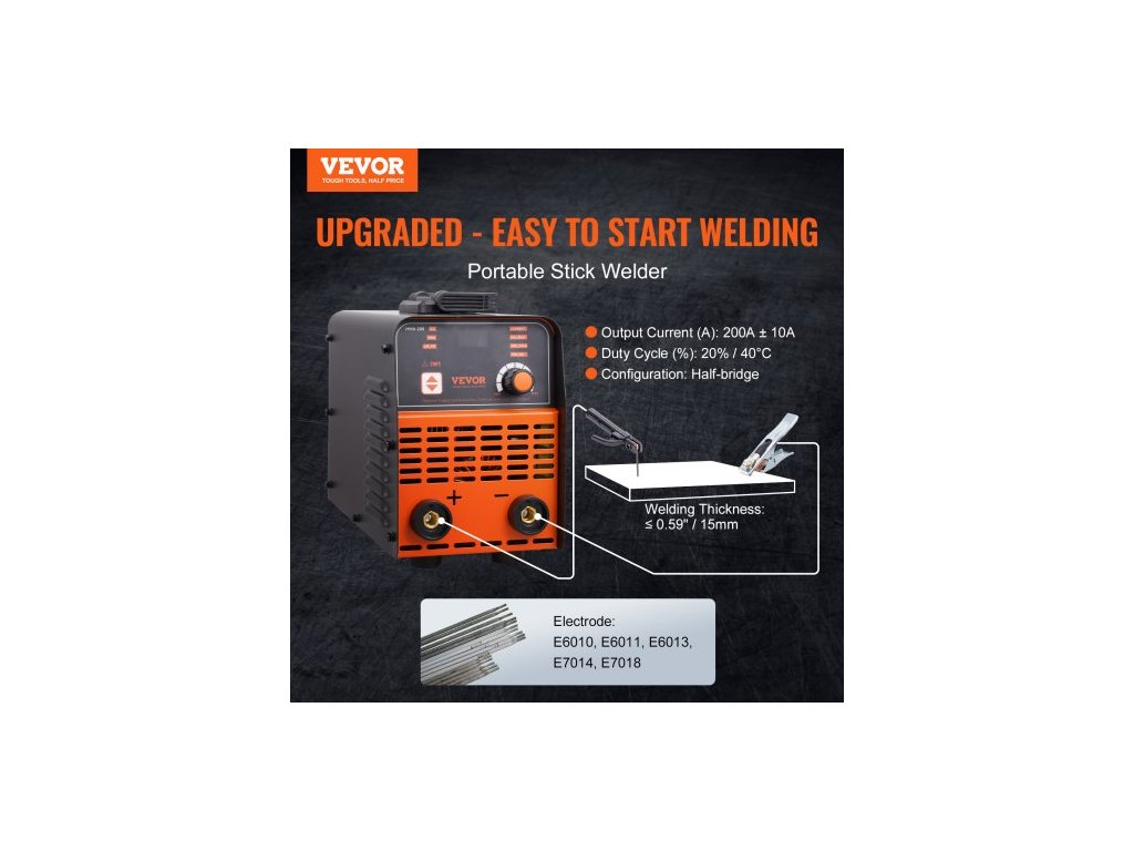 Svářečka obalenou elektrodou 220V, 200A ARC/Lift TIG svařovací stroj s velkým LED displejem, přenosný 2v1 svařovací stroj obalenou elektrodou s Hot Start Arc Force Anti-Stick VRD, svářečka MMA ARCIdeální výkon