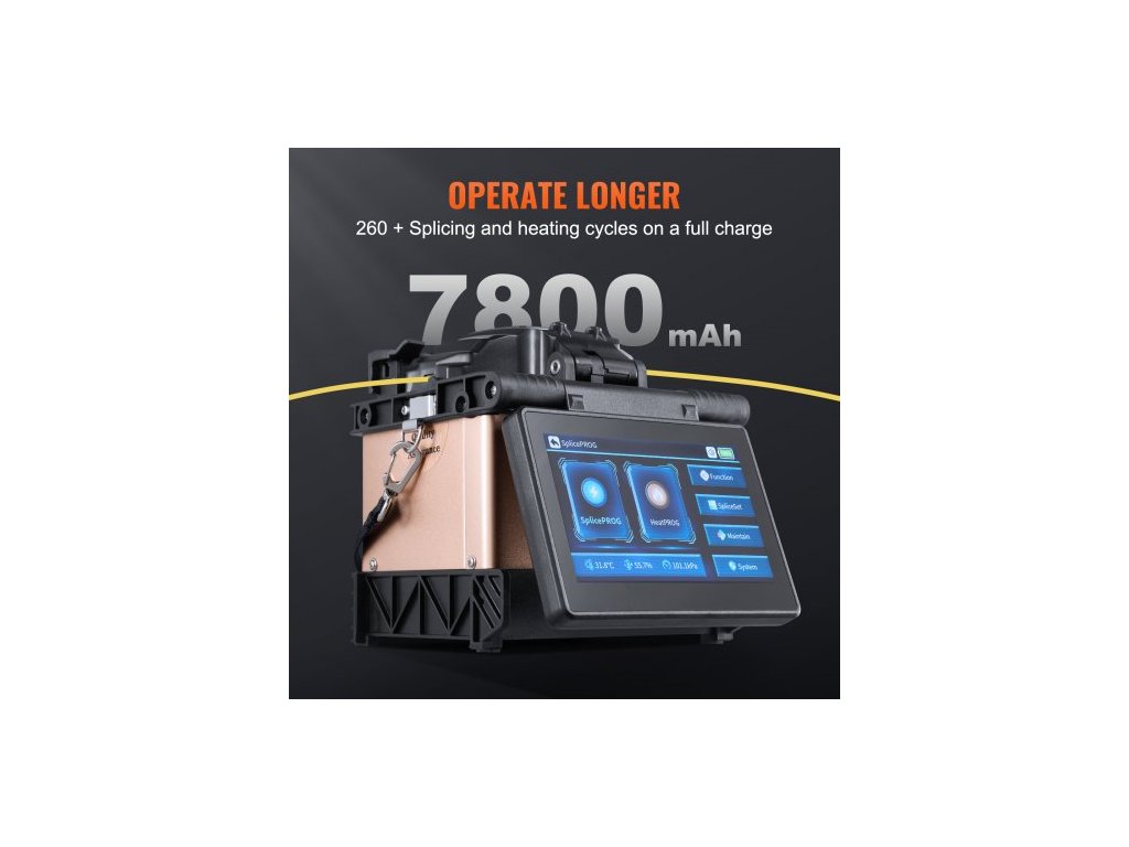 Svářečka optických vláken , 4 motory, zarovnání pláště, svářečka optických vláken 6 s, zahřívání 13 s, svářečka vláken s 5" dotykovou obrazovkou, držák vláken 3 v 1, baterie 7800 mAh pro SM MM DS NZDS5palcová barevná dotyková obrazovka