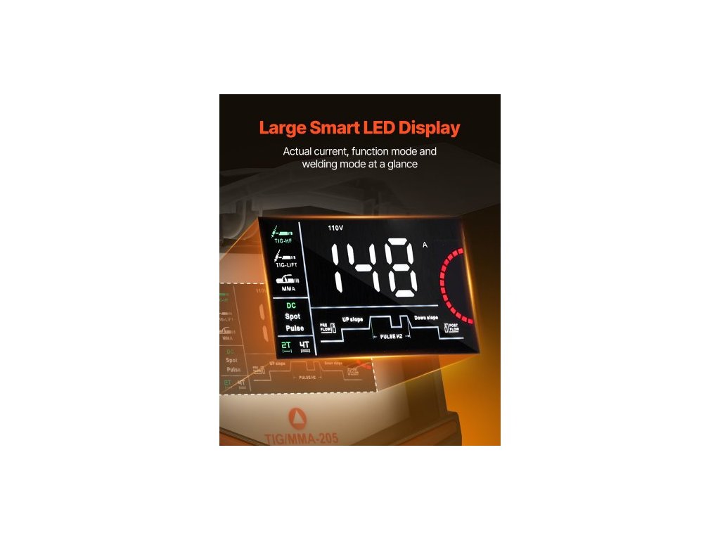 Svářečka TIG, svářecí stroj 3 v 1 205A (velký LED displej) - DC TIG/DC pulzní TIG/MMA (obalená elektroda), elektrická svářečka s invertorem IGBT, vysokofrekvenční startVáš spolehlivý svářeč