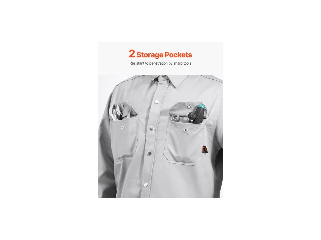 Svářečská bunda FR – velikost XL, 7 oz. Svářečská bunda z nehořlavé bavlny, pratelná v pračce, žáruvzdorná bezpečnostní bunda s kovovým patentním knoflíkem a nastavitelnou manžetou, splňuje normu ATPV 9,2 Cal/cm² pro hodnocení obloukuVysoká úroveň ochrany