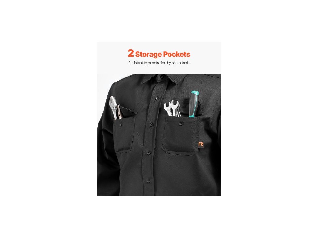 Obvod hrudníku: 51 palců, Délka rukávu: 25,5 palců, Velikost: L, Barva: Černá, Materiál: Čistá bavlna, Ohnivzdorný materiál: Ano, Rozměry výrobku: 33,5 x 51,0 x 25,5 palců / 850,9 x 1295,4 x 647,7 mm, Typ knoflíku: Knoflík, Hmotnost látky: 7 oz, Délka: 33,5 palců, Číslo modelu položky: AP-6832, Kapsy: 2, Čistá hmotnost: 1,31 lbs / 0,59 kg (včetně veškerého příslušenství), Jmenovitý oblouk: ATPV 9,2 Cal/cm²