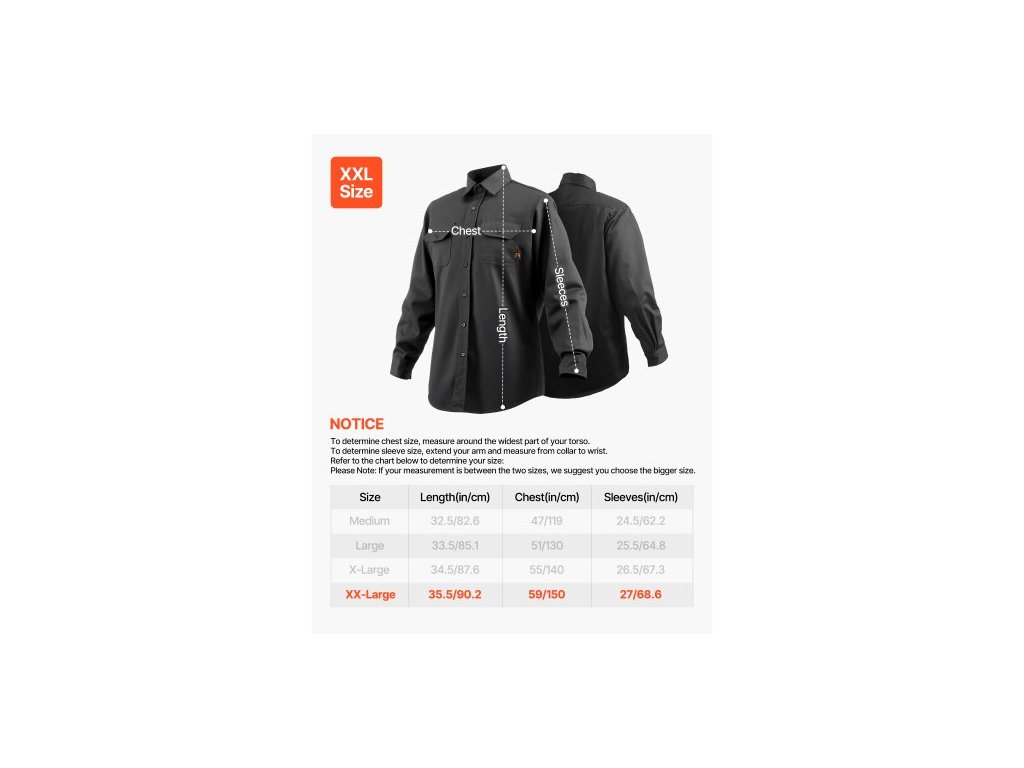 Svářečská bunda odolná proti plameni – velikost XXL, 7 oz. Svářečská bunda z FR bavlny, pratelná v pračce, žáruvzdorná bezpečnostní bunda s límcem, nastavitelné manžety a kapsy, splňuje ATPV 9,2 Cal/cm² hodnocení obloukuVysoká úroveň ochrany