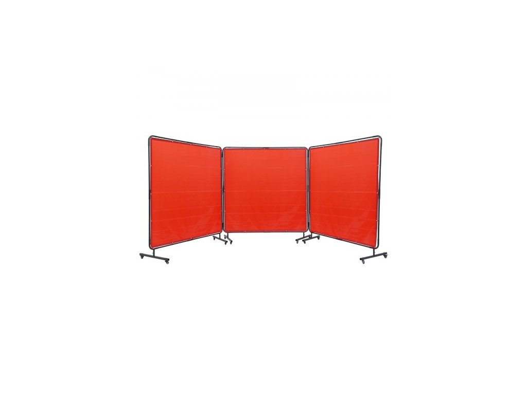 Svářečská zástěna s rámem, 1,8 x 1,8 m, 3dílná svářečská zástěna, nehořlavá vinylová ochranná svářečská zástěna na 12 otočných kolečkách (6 uzamykatelných), přenosná a profesionální pro dílnu, červená