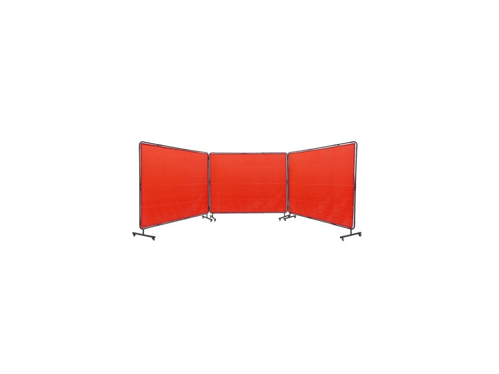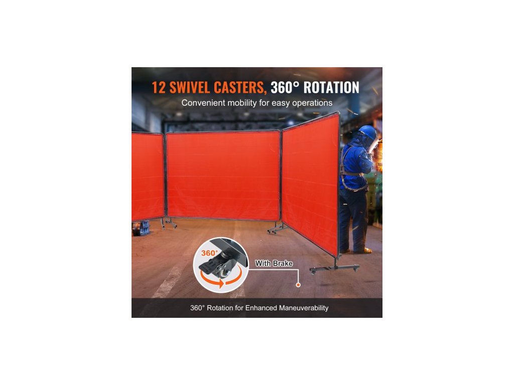 Svářečská zástěna s rámem, 1,8 x 2,4 m, 3dílná svářečská zástěna, ochranná svářečská zástěna z nehořlavého vinylu na 12 otočných kolečkách (6 uzamykatelných), přenosná a profesionální pro dílnu, červenáPrémiový nehořlavý materiál
