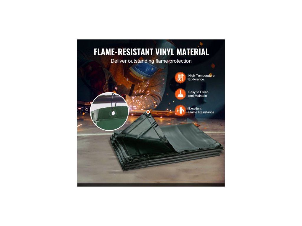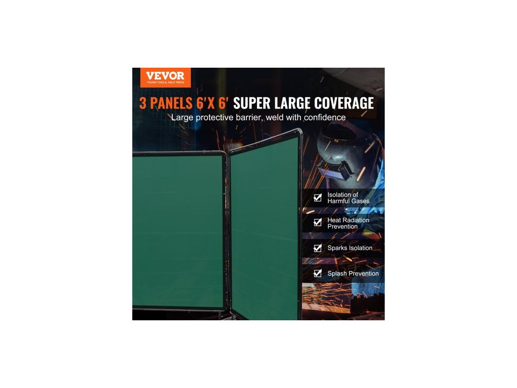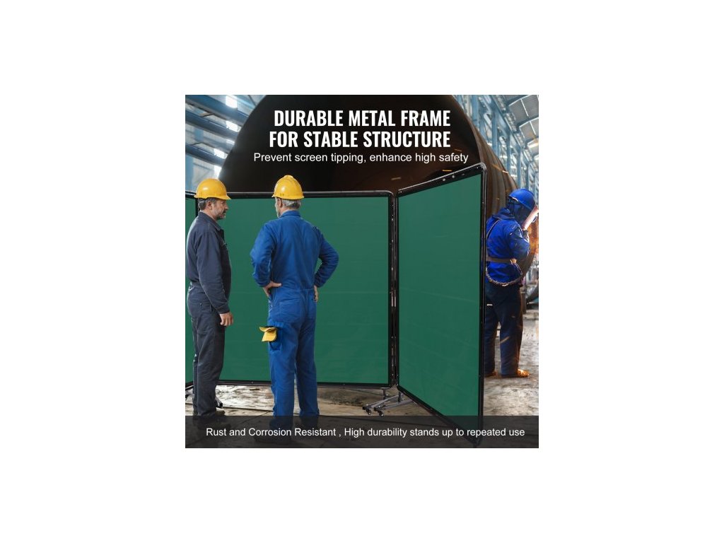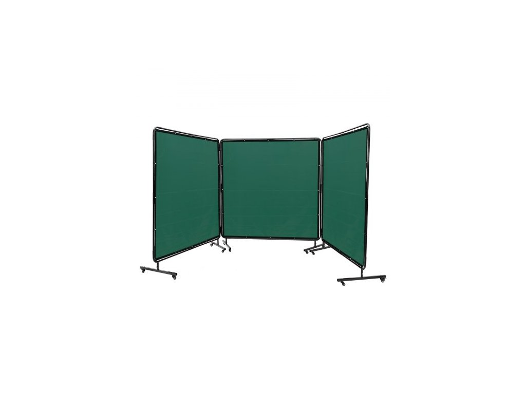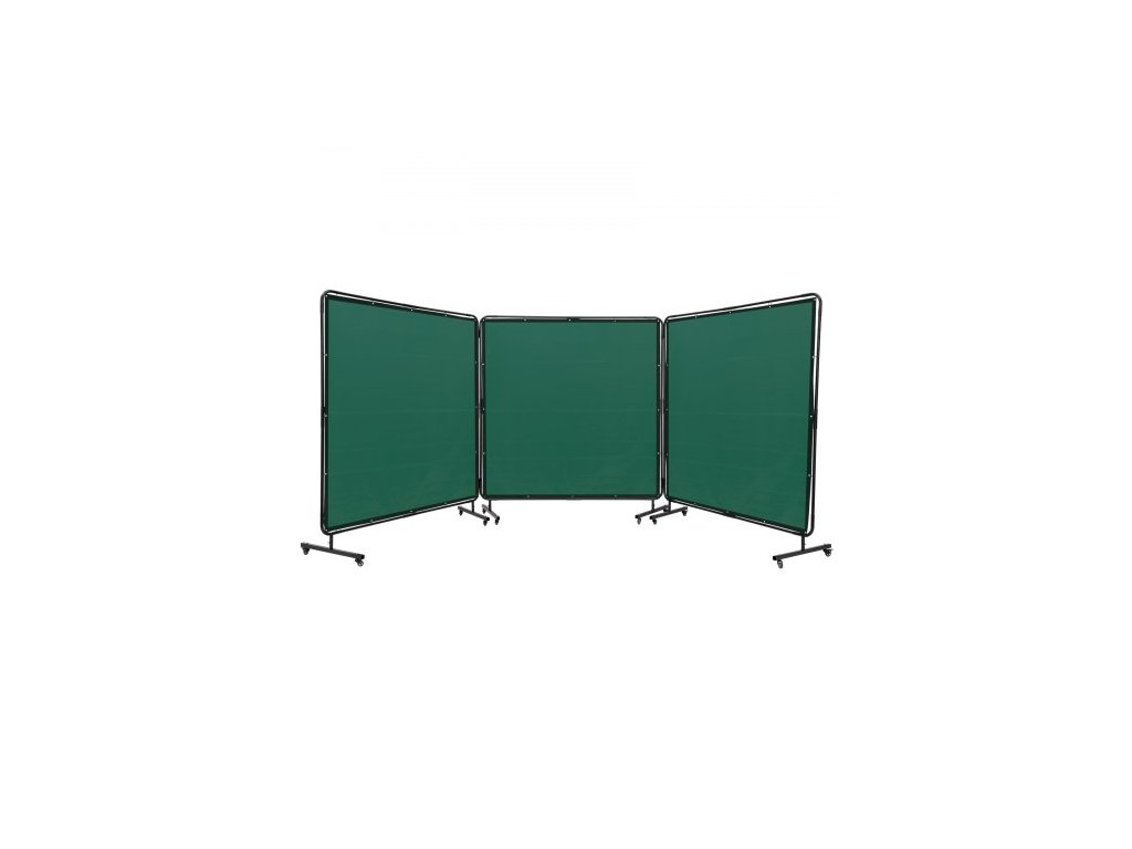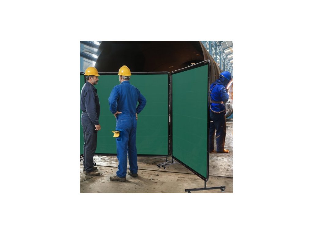 Svářečská zástěna s rámem, 182,9 cm x 182,9 cm, 3dílná svářečská zástěna, nehořlavá vinylová ochranná svářečská zástěna na 12 otočných kolečkách (6 uzamykatelných), přenosná a profesionální pro dílnu, zelená