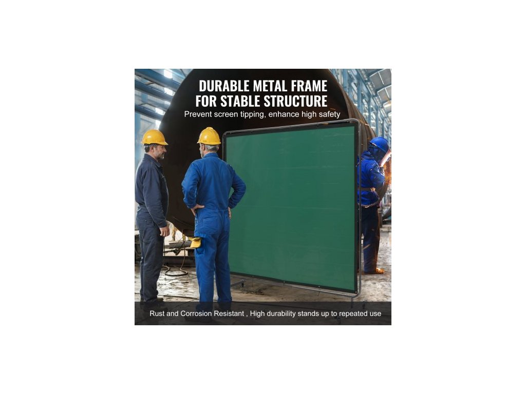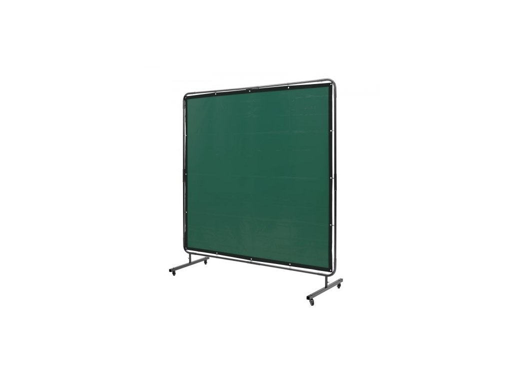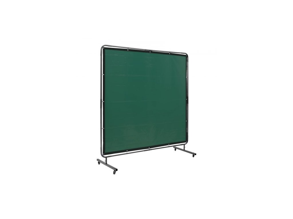 Svářečská zástěna s rámem, svářečská zástěna 1,8 x 1,8 m, ochranná svářečská zástěna z nehořlavého vinylu na 4 otočných kolečkách (2 uzamykatelná), přenosná a profesionální pro dílnu/průmysl, zelená