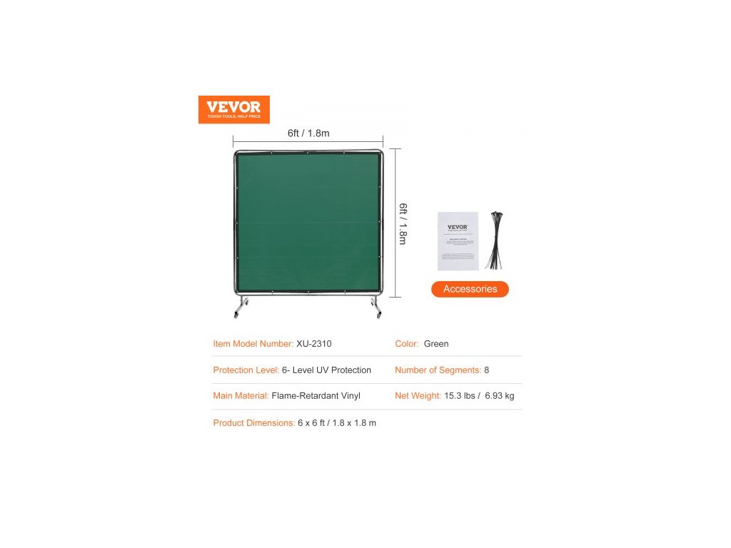 Úroveň ochrany: 6stupňová UV ochrana, počet segmentů: 8, barva: zelená, číslo modelu: XU-2310, rozměry produktu: 6 x 6 stop / 1,8 x 1,8 m, hmotnost netto: 15,3 lbs / 6,93 kg, hlavní materiál: nehořlavý vinyl