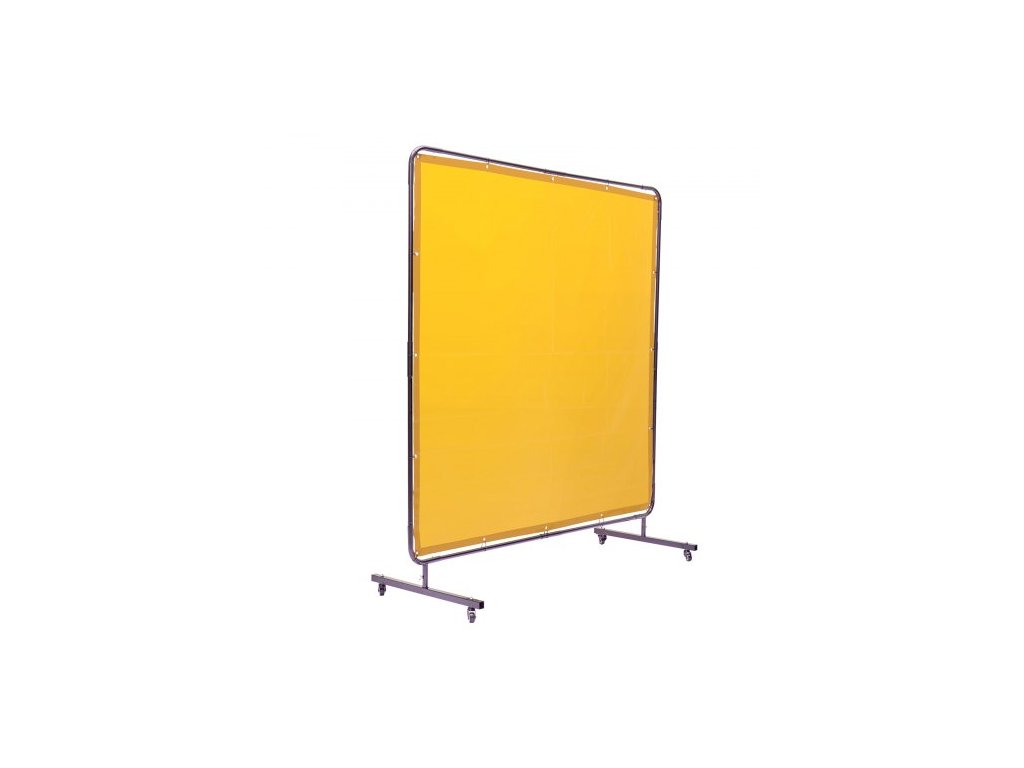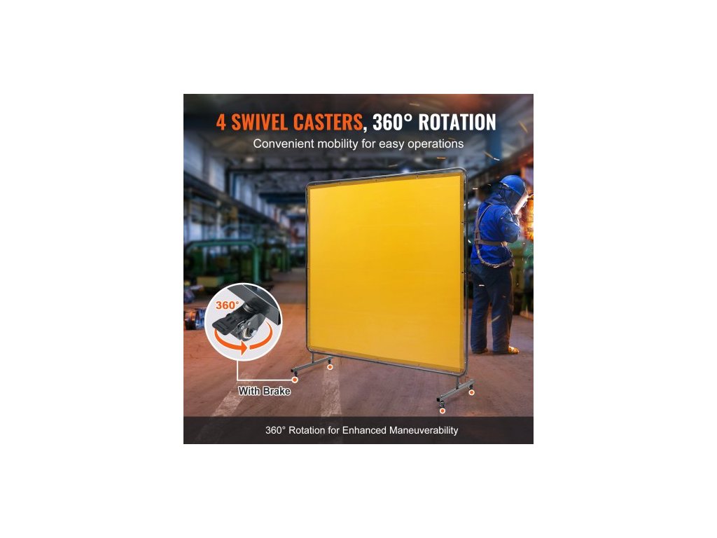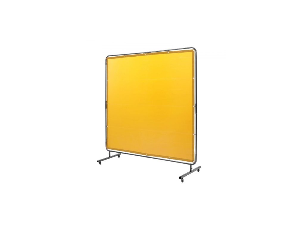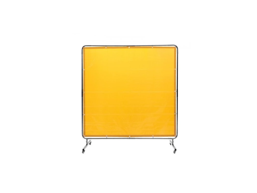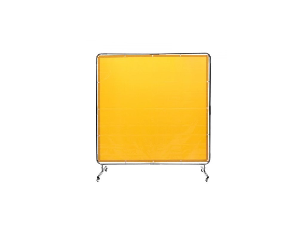 Svářečská zástěna s rámem, svářečská zástěna 6' x 6', ochranná svářečská zástěna z nehořlavého vinylu na 4 otočných kolečkách (2 uzamykatelná), přenosná a profesionální pro dílnu/průmysl, žlutá