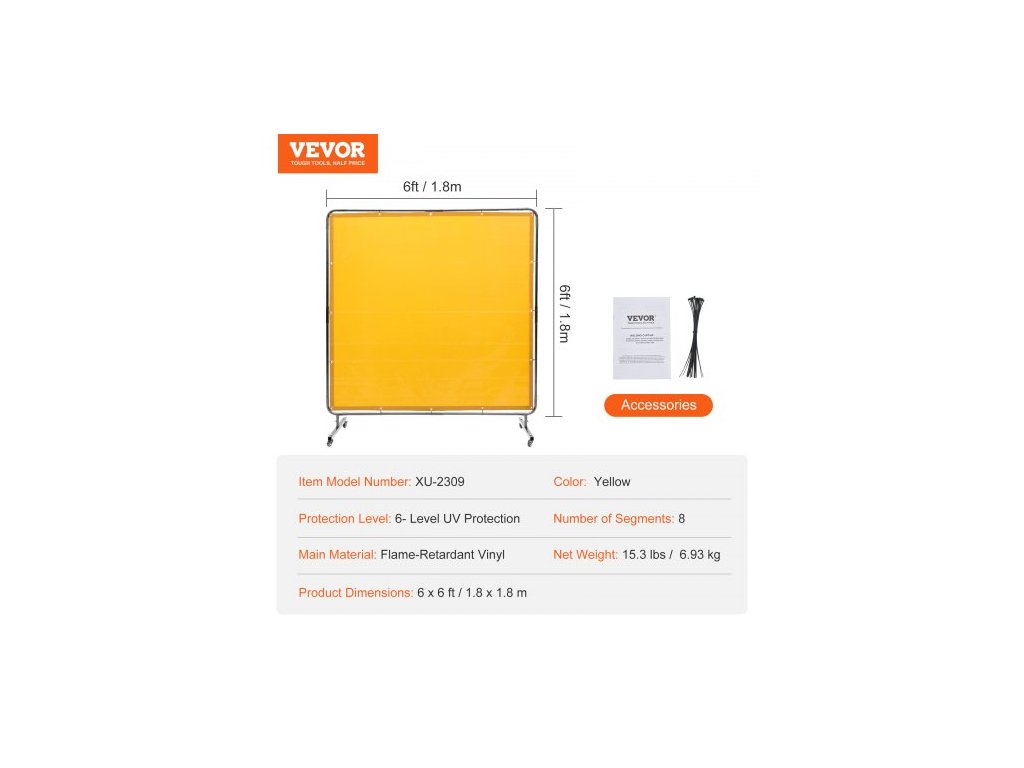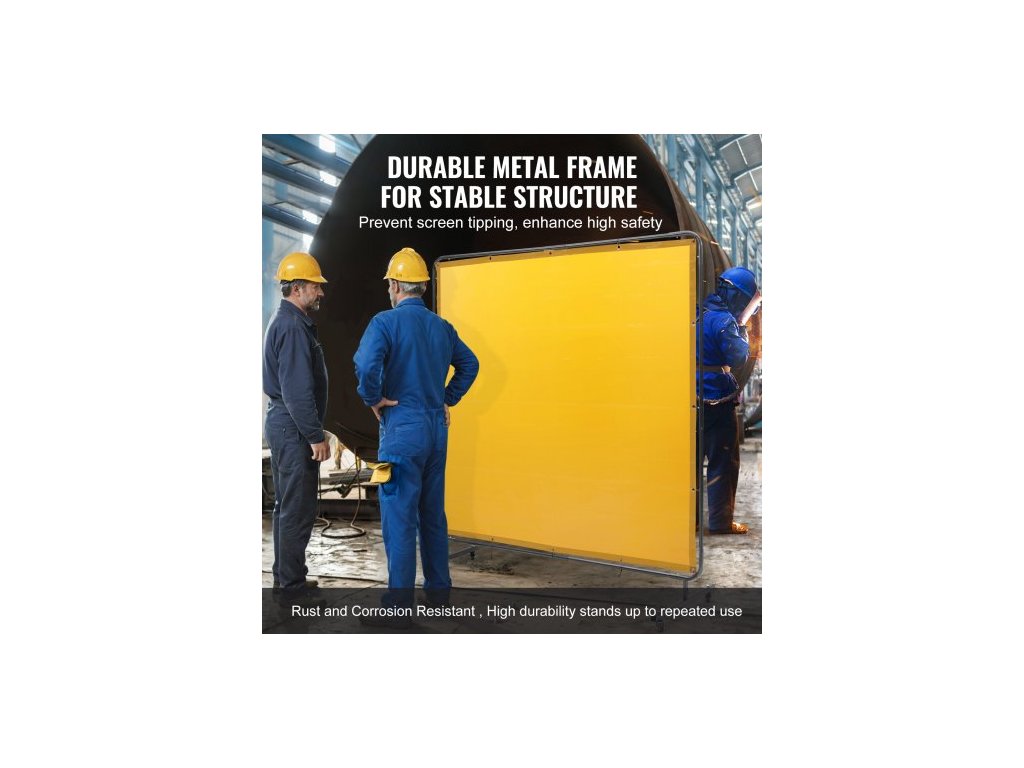 Svářečská zástěna s rámem, svářečská zástěna 6' x 6', ochranná svářečská zástěna z nehořlavého vinylu na 4 otočných kolečkách (2 uzamykatelná), přenosná a profesionální pro dílnu/průmysl, žlutáPrémiový nehořlavý materiál