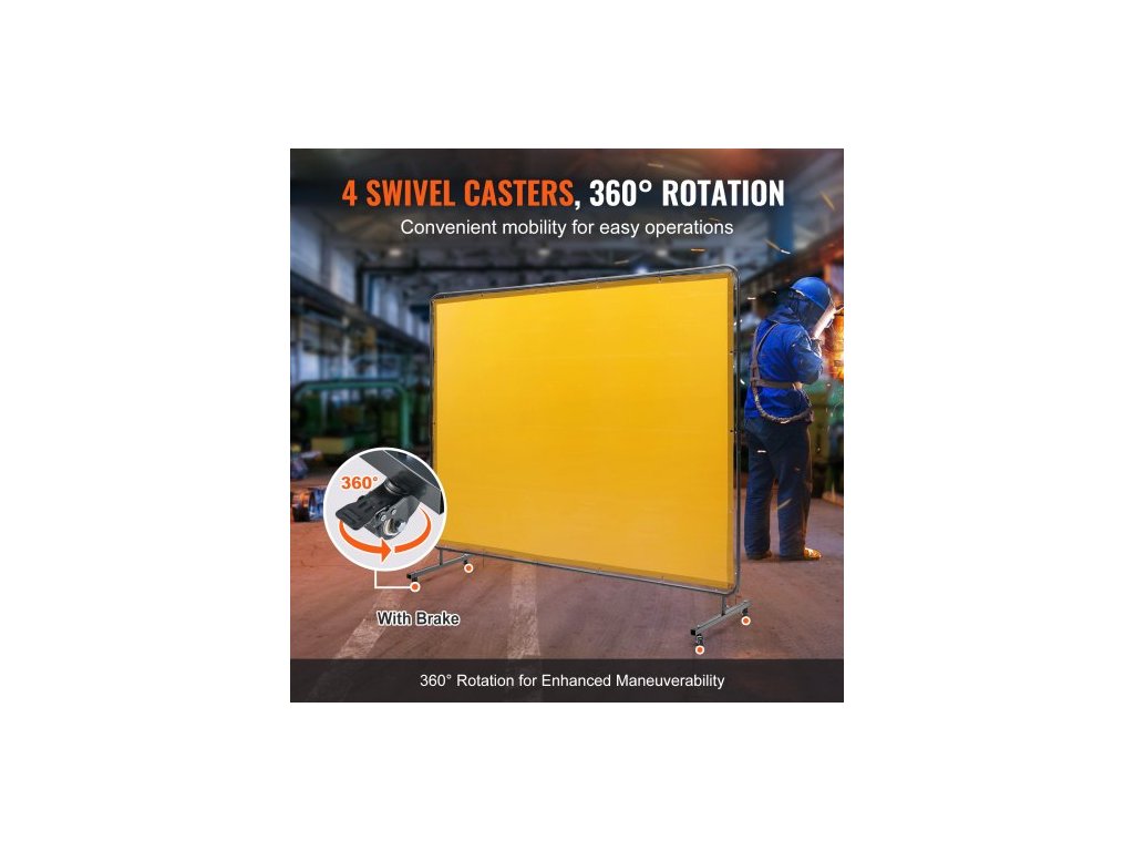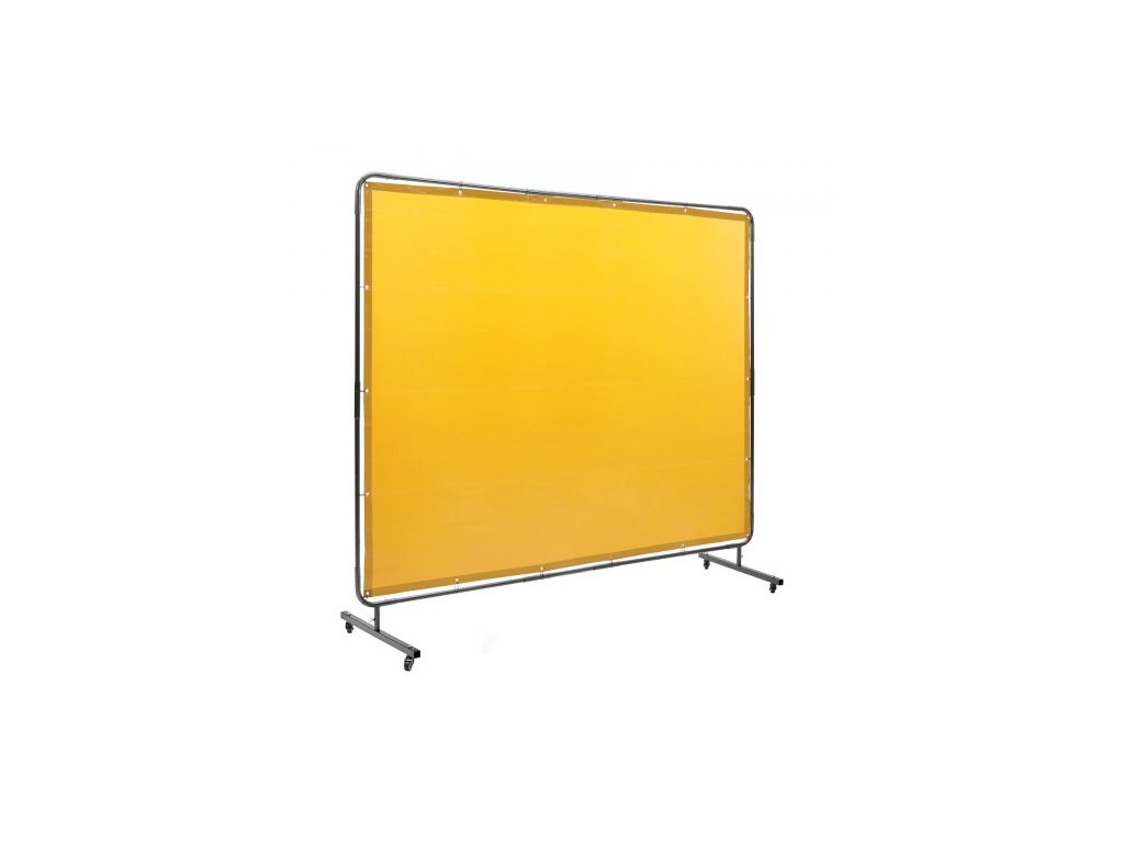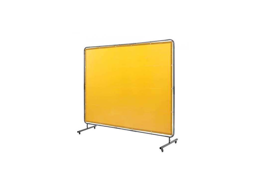 Svářečská zástěna s rámem, svářečská zástěna 6' x 8', ochranná svářečská zástěna z nehořlavého vinylu na 4 otočných kolečkách (2 uzamykatelná), přenosná a profesionální pro dílnu/průmysl, žlutá