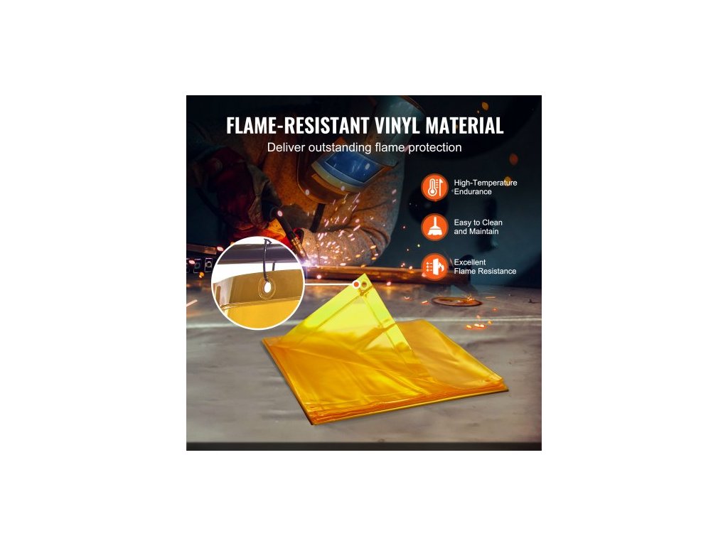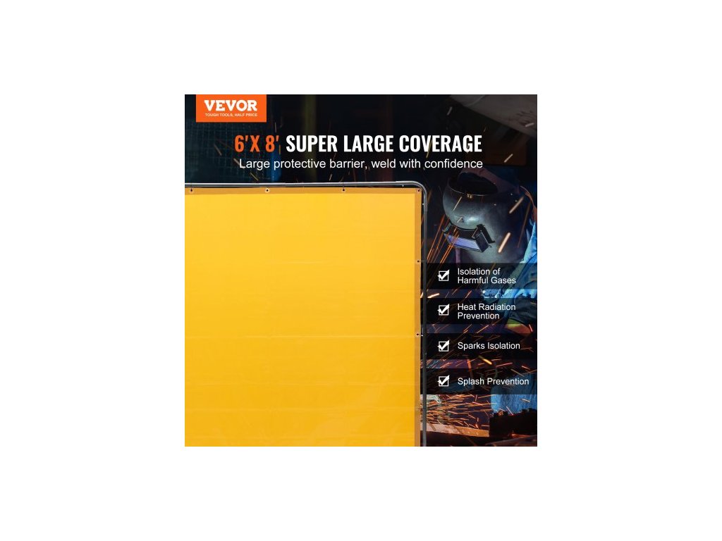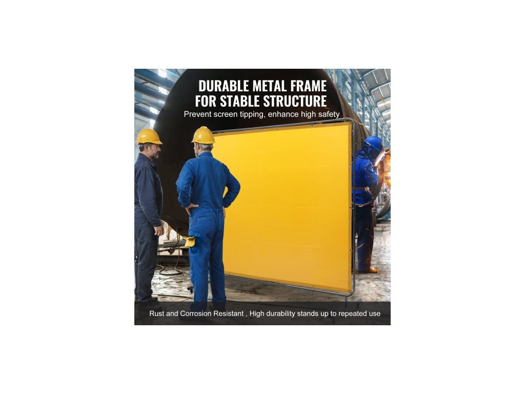 Svářečská zástěna s rámem, svářečská zástěna 6' x 8', ochranná svářečská zástěna z nehořlavého vinylu na 4 otočných kolečkách (2 uzamykatelná), přenosná a profesionální pro dílnu/průmysl, žlutáPrémiový nehořlavý materiál