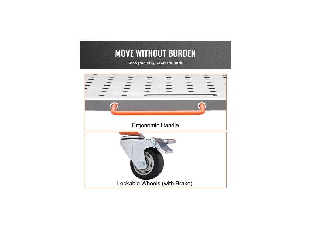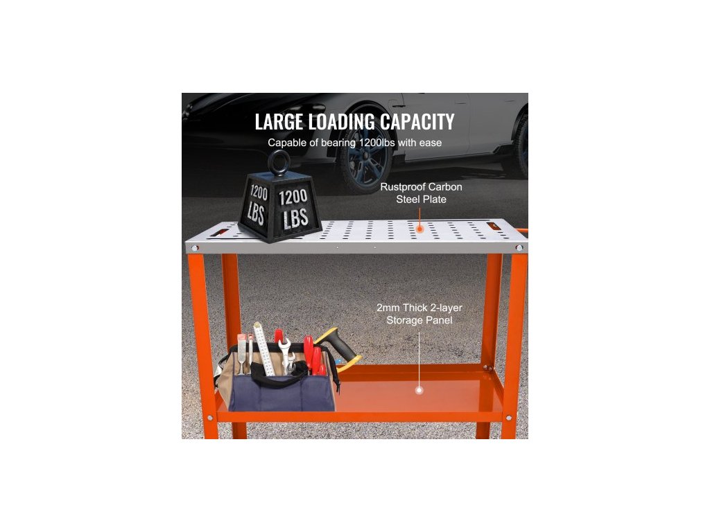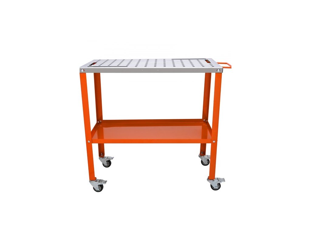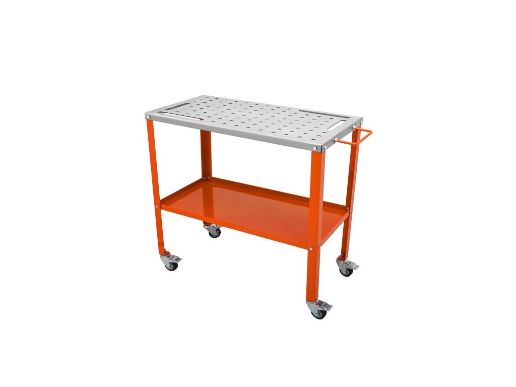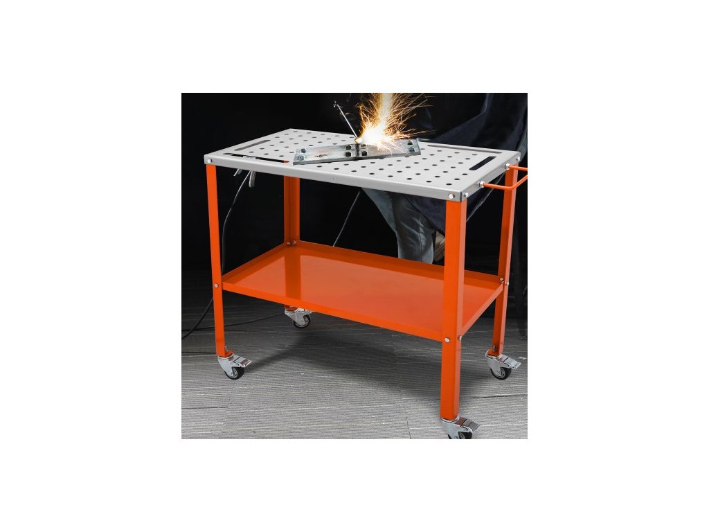 Svářečský stůl 91,4 cm x 45,7 cm, nosnost 544 kg, ocelový svářečský pracovní stůl na kolečkách, 2 úrovně, přenosný pracovní stůl s brzdnými kolečky, 4 sloty pro nástroje, upínací otvory 1,6 cm