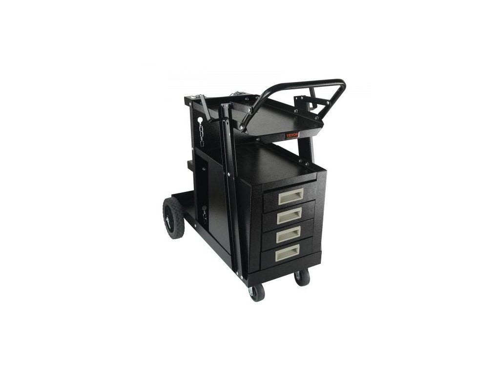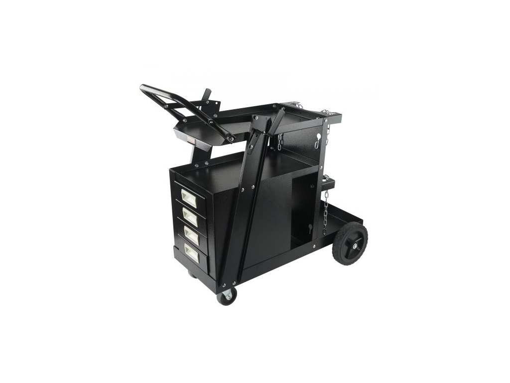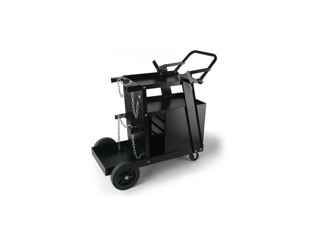 Svářečský vozík , 2patrový, 4zásuvkový, nosnost 120,2 kg, otočná kolečka o 360°, bezpečnostní řetězy pro uložení nádrže, odolný vozík pro MIG svářečku a plazmovou řezačku