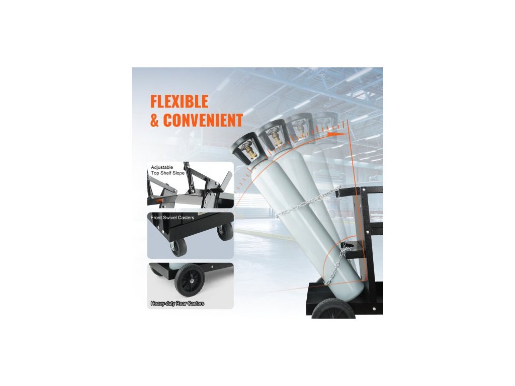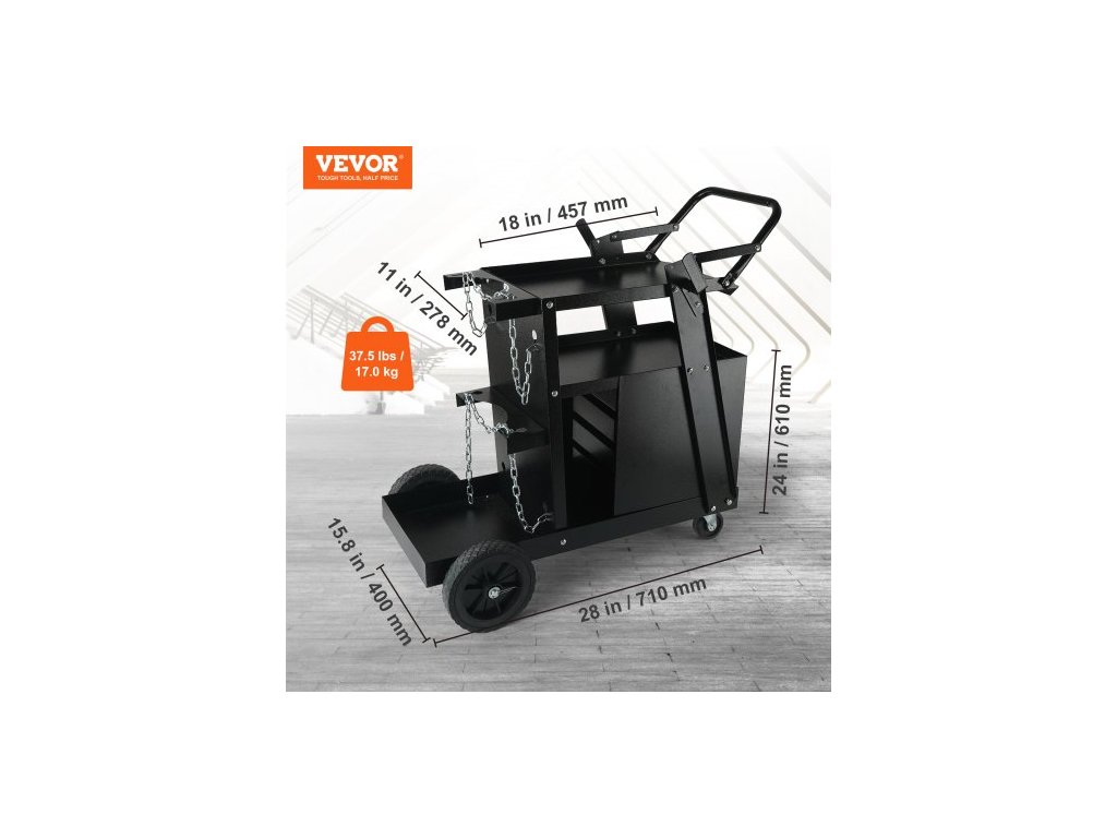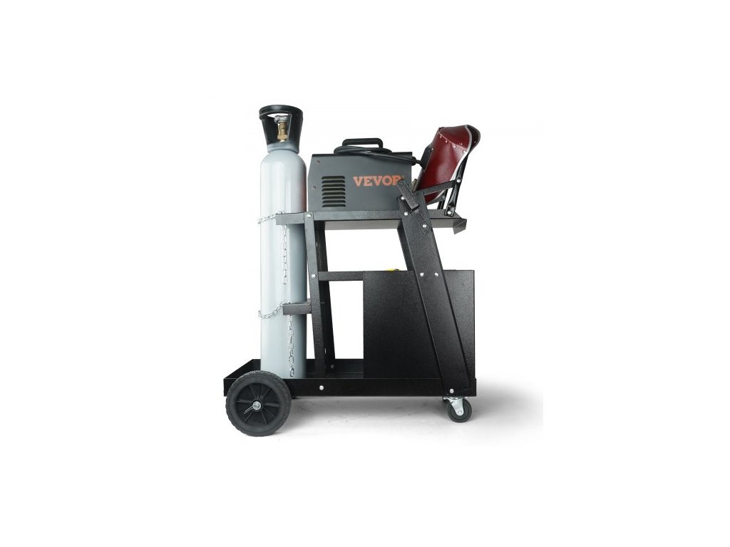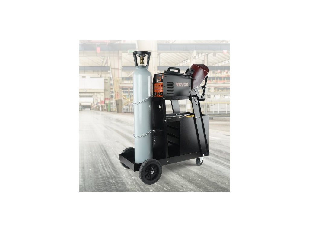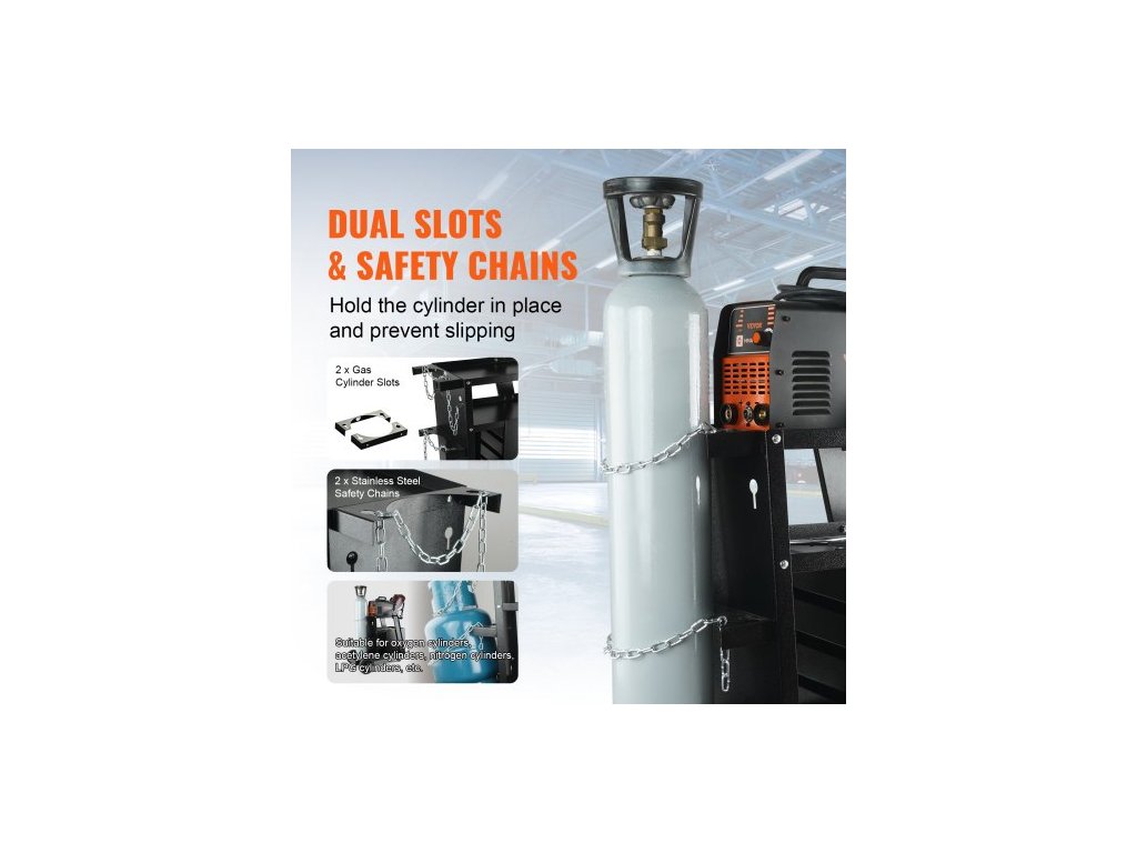 Svářecí vozík , 2patrový svářecí vozík se 4 zásuvkami a nosností 120,2 kg, otočná kolečka o 360°, bezpečnostní řetězy pro uložení nádrže, odolný pojízdný vozík pro svářečku MIG a plazmovou řezačkuUž žádný nepořádek