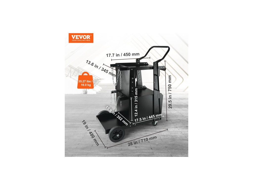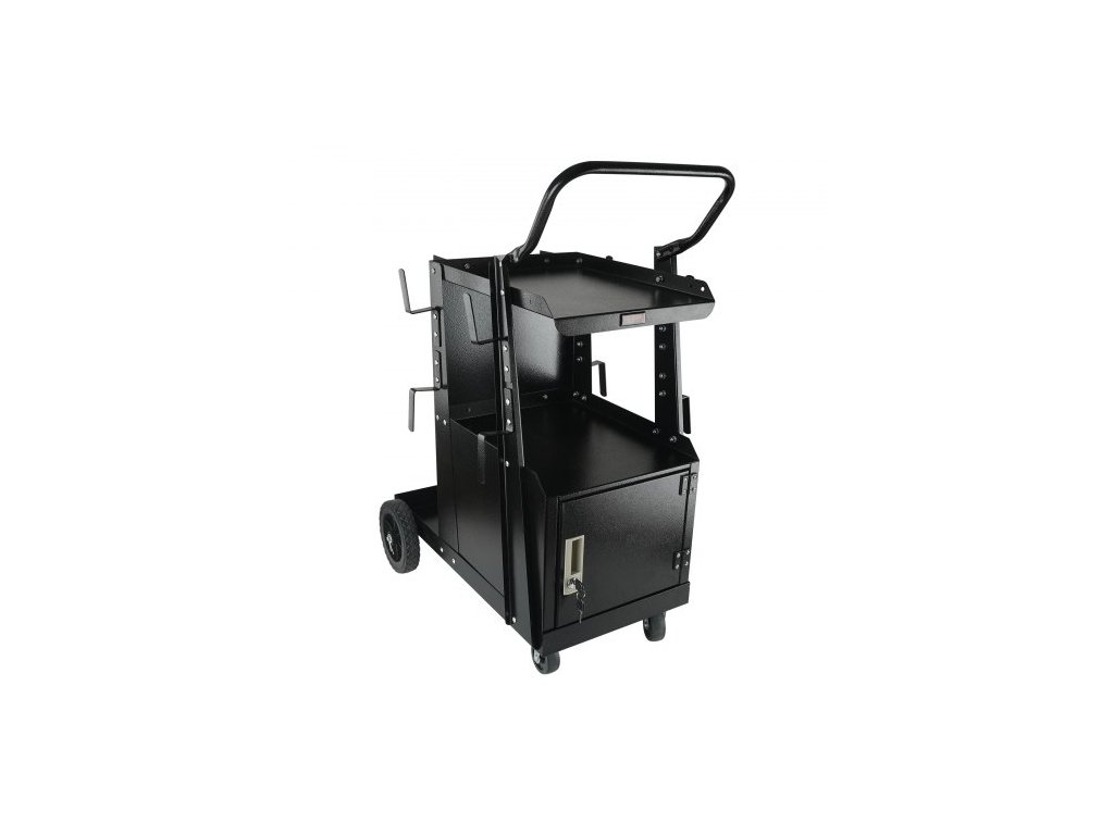Svářečský vozík , dvoupatrový robustní svářečský vozík s uzamykatelnou skříňkou s ochranou proti krádeži, nosnost 120,2 kg, otočná kola o 360°, bezpečnostní řetězy pro uložení nádrže, svářečská skříň pro TIG, ARC, plazmovou řezačku