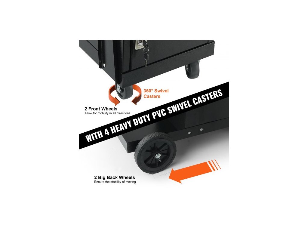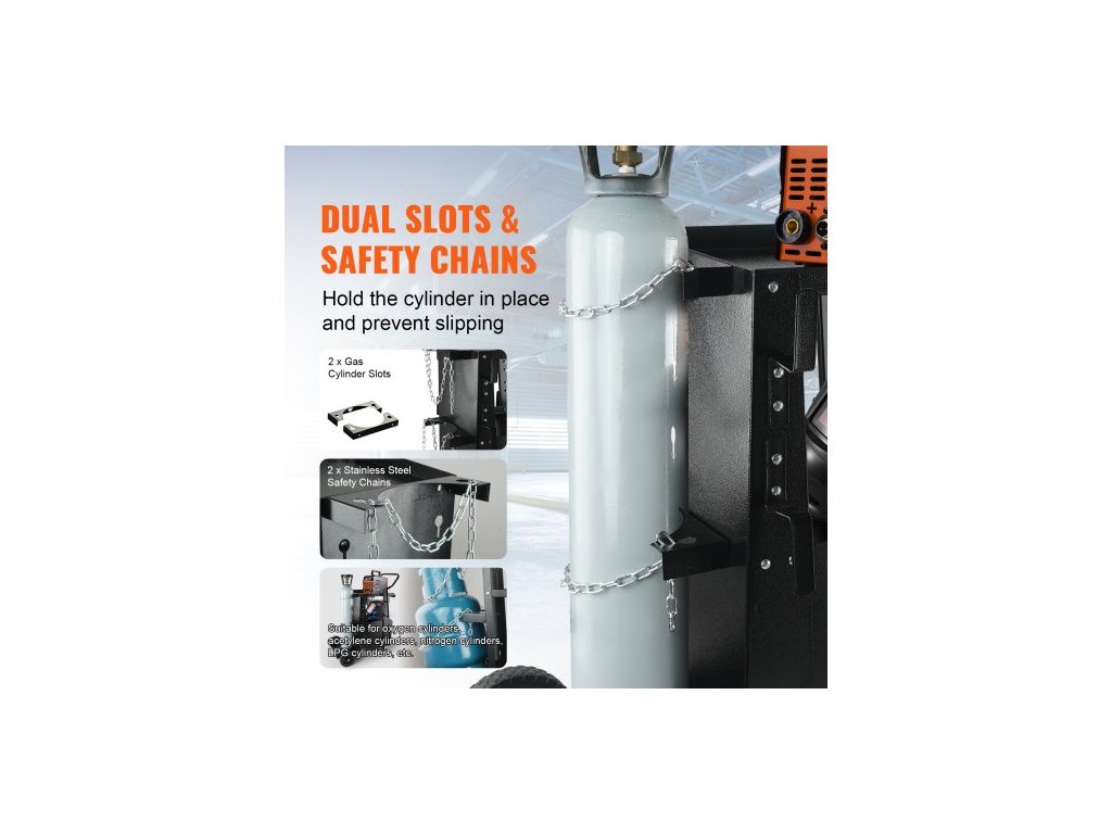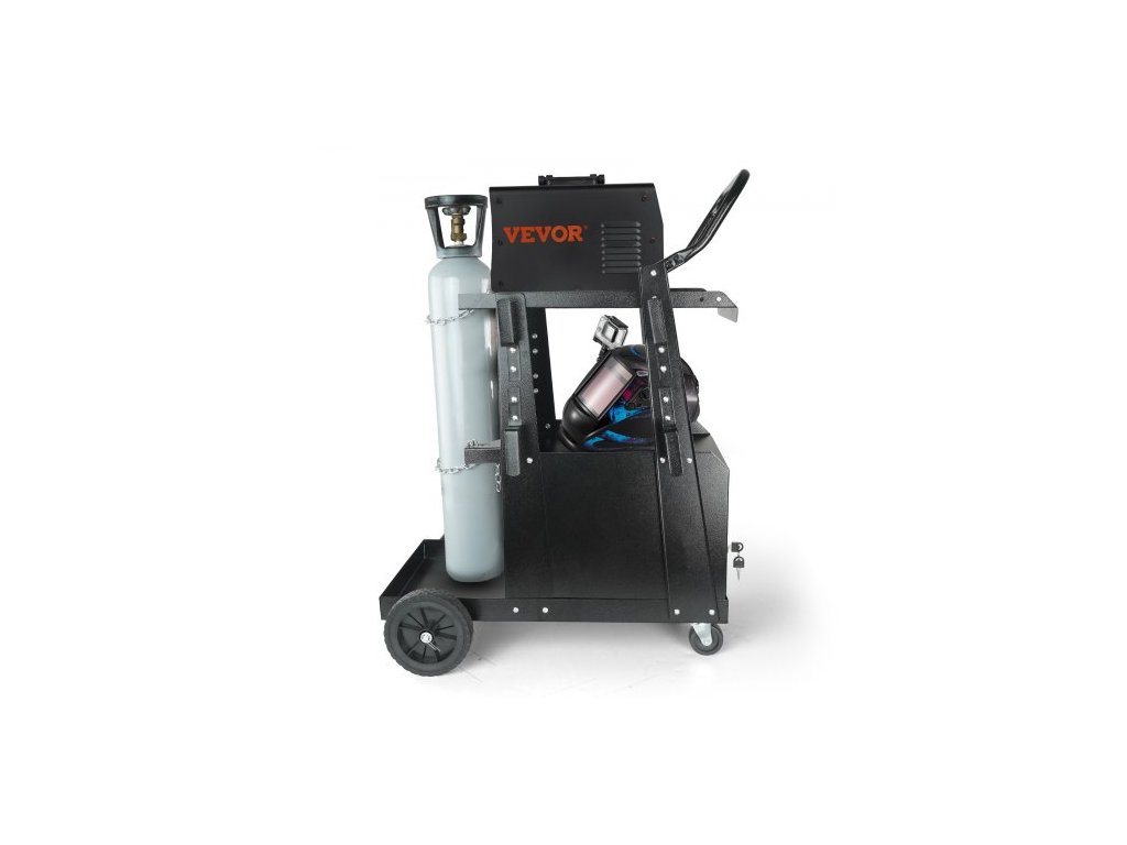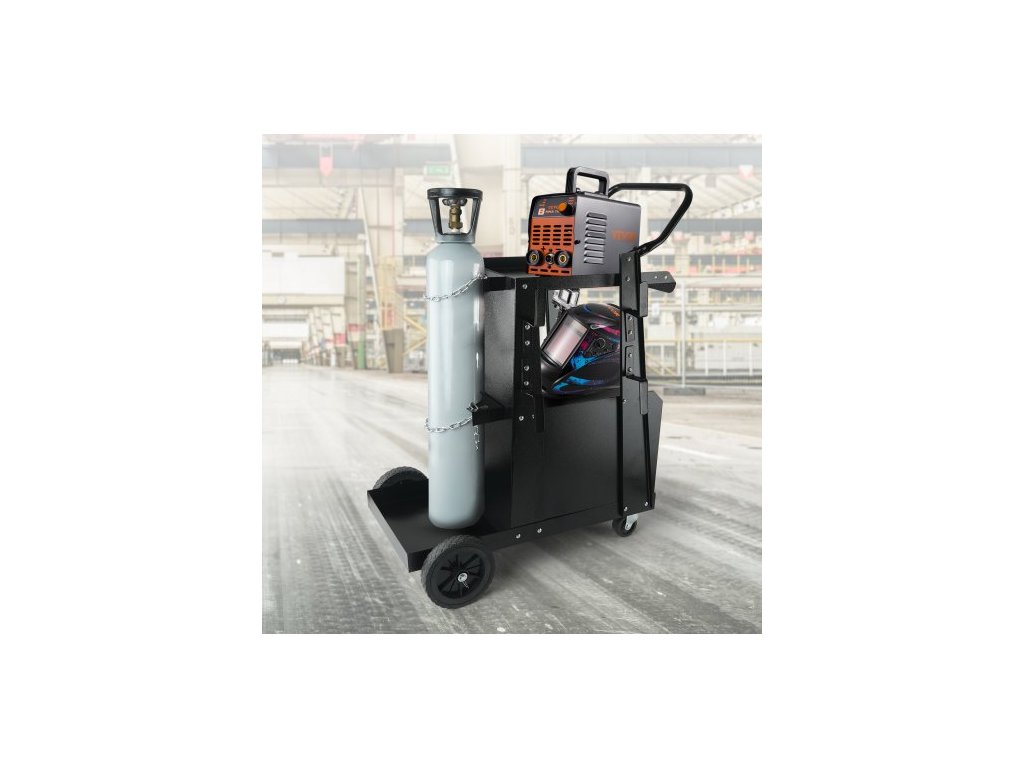 Svářecí vozík , 2patrový robustní svářecí vozík s uzamykatelnou skříňkou s ochranou proti krádeži, nosnost 120,2 kg, otočná kola o 360°, bezpečnostní řetězy pro uložení nádrže, svářecí skříň pro TIG, ARC, plazmovou řezačkuUž žádný nepořádek