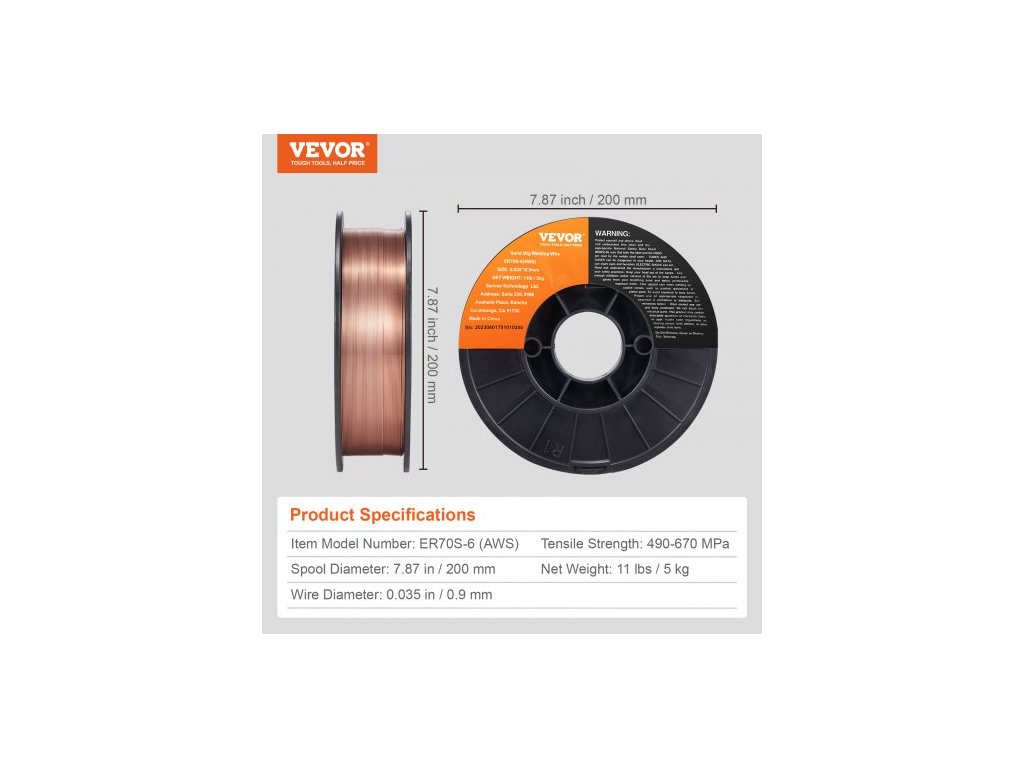 Pevnost v tahu: 490-670 MPa,Průměr cívky: 7,87 palce / 200 mm,Číslo modelu položky: ER70S-6 (AWS),Čistá hmotnost: 11 lbs / 5 kg,Průměr drátu: 0,035 palce / 0,9 mm