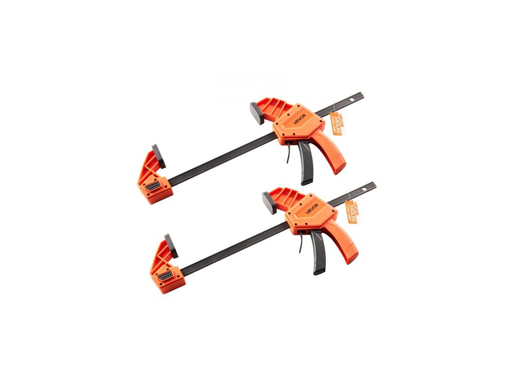 Svěrky pro dřevoobrábění, balení 2 kusů, 30,48 cm jednoruční svěrka/rozpěrka, rychloupínací F-svěrka s nosností 154 kg, prémiový plast a uhlíková ocel, pro dřevoobrábění a kovobrábění, oranžová + černá