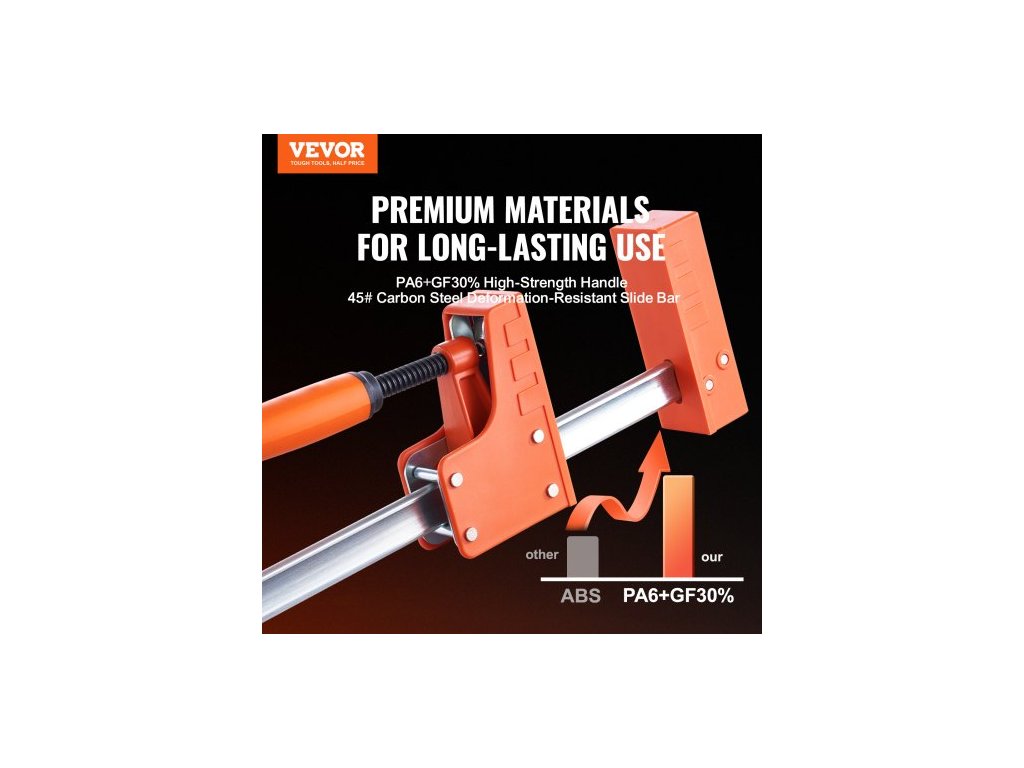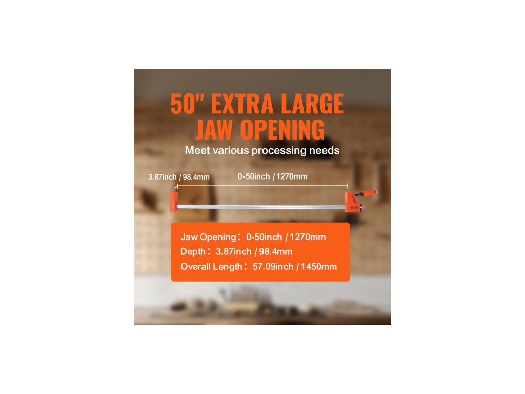 Materiál plastového pouzdra: PA6+GF30,Nosnost: 1100 liber,Materiál posuvné tyče: Uhlíková ocel 45#,Barva: VI oranžová (práškový lak),Číslo modelu položky: F1100-50,Množství: 2 kusy,Rozteč čelistí: 50" / 0-1270 mm,Rozměry výrobku: 57,1" x 5,9" x 2" / 145 x 15 x 5 cm,Hloubka: 3,87" / 98,4 mm