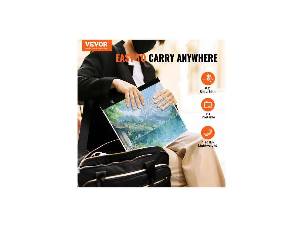 Světelná deska , LED světelná podložka B4, ultratenký přenosný světelný box, světelný stůl napájený z USB pro umělecké obkreslování, světelný box pro diamantové malování, animaci, skicování, kreslení, šablonování, umělce (černý)Nechte svou kreativitu zářit kdekoli
