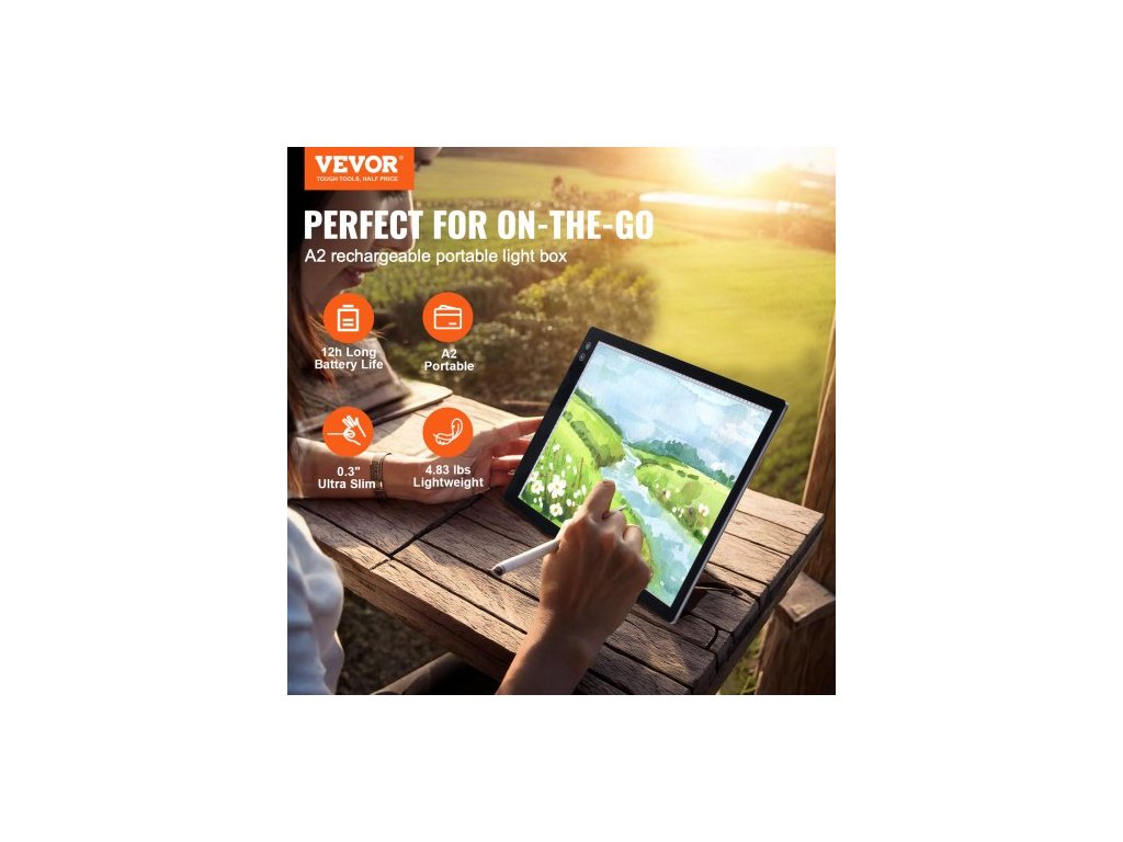 Světelná tabule , LED světelná podložka A2 se stmívatelným jasem v 6 úrovních, dobíjecí světelný stůl pro obkreslování, světelný box pro diamantové malování, animaci, skicování, kreslení, šablonování, umělce (černý)Baterie 5200 mAh