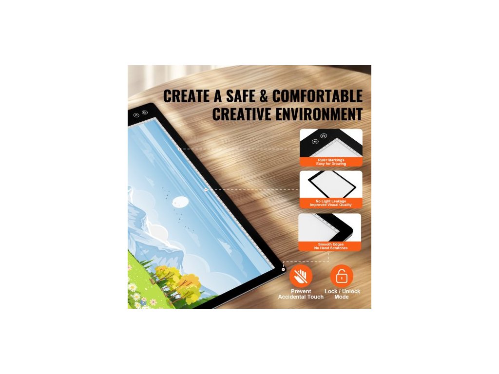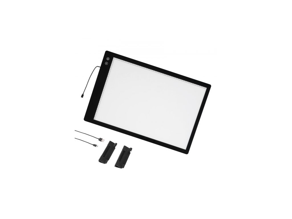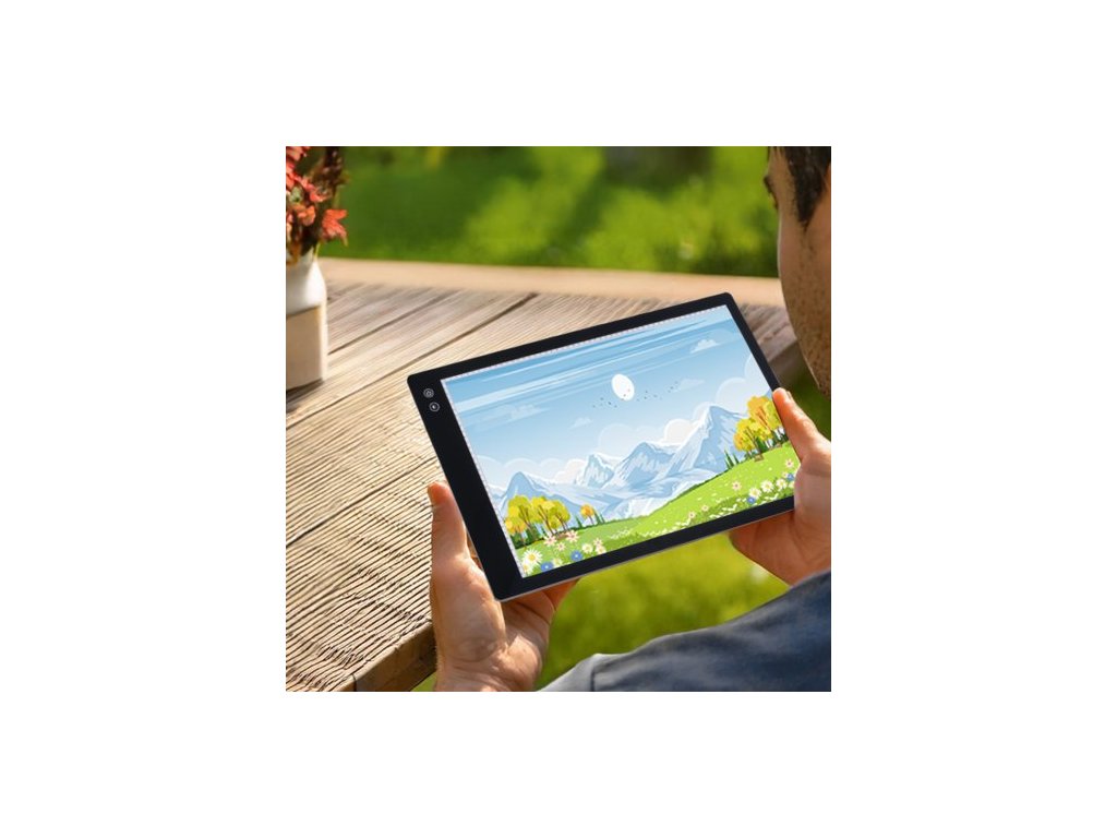 Světelná tabule , LED světelná podložka A2 se stmívatelným jasem v 6 úrovních, dobíjecí světelný stůl pro obkreslování, světelný box pro diamantové malování, animaci, skicování, kreslení, šablonování, umělce (černá)