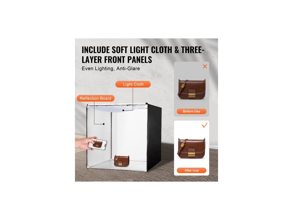 Světelný box pro fotostudio 1000x1000x1000 mm 5600K s 210 LED diodami, napájecí adaptér
