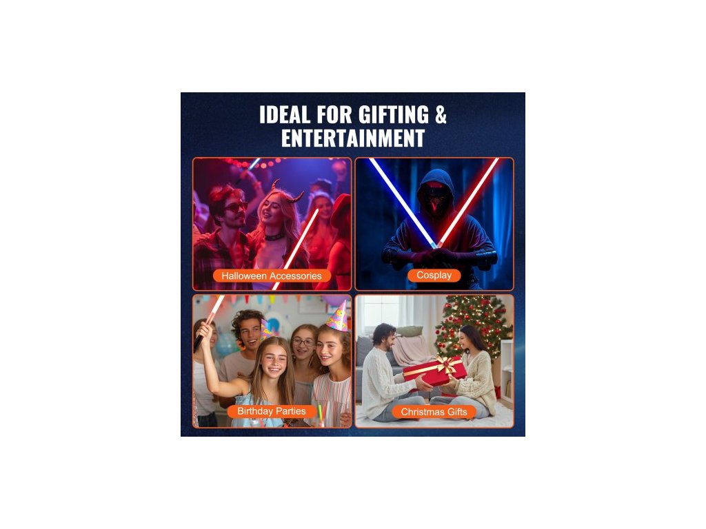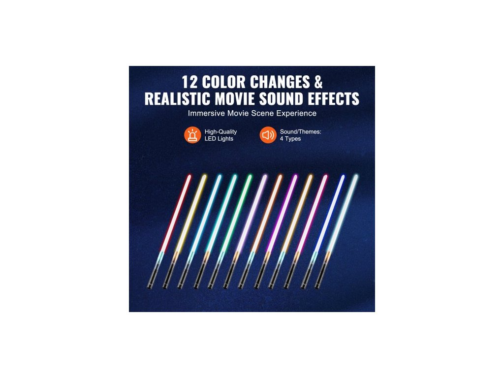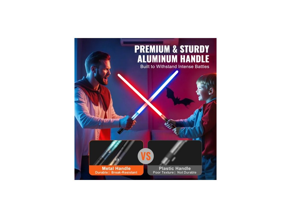 Světelný meč, 2 kusy svítících mečů s 12 barvami RGB, 4 zvukovými režimy a realistickou rukojetí, dobíjecí meč pro dospělé a děti, na Vánoce, Halloween, cosplay, narozeniny