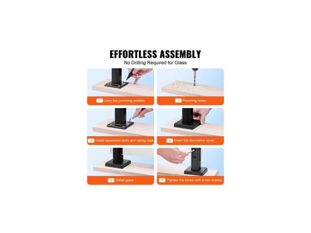 Svorka na sklo , 4dílná hranatá konzola na zábradlí ze skla pro tvrzené sklo o tloušťce 0,31"-0,47", montážní svorka z nerezové oceli 304, konzola na skleněnou poličku o tloušťce 0,12” pro balkon, zahradu, terasu, schodištěOboustranná hranatá svorka