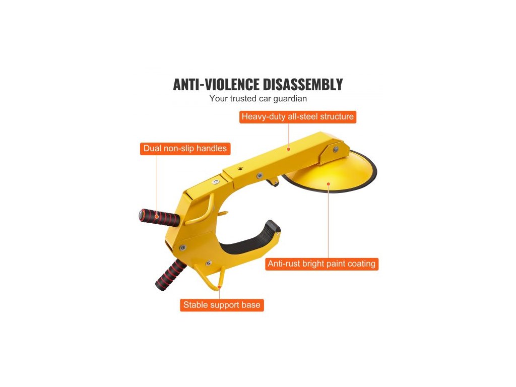 Typ: Zámek kola,Číslo modelu položky: QS-002,Množství: 1 ks,Materiál: Ocel Q235,Průměr přísavky: 12"/30 cm,Čistá hmotnost: 11 lbs/5 kg,Vhodné pro průměr kola: 6,3"-15"/160-380 mm