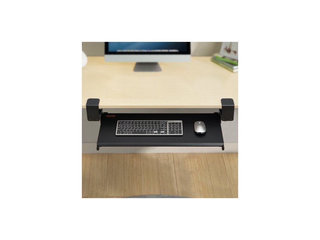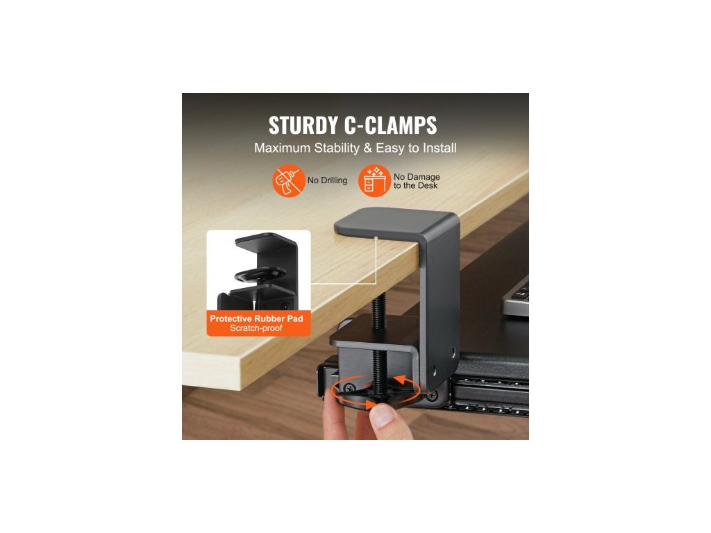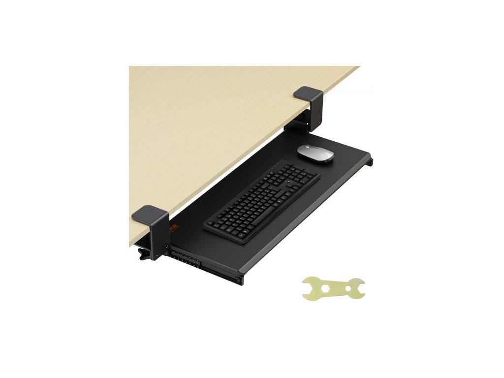 svorka na zásuvku na klávesnici pod stolem, vysouvací zásuvka na klávesnici s robustním upevněním C bez vrtání, velká vysouvací zásuvka na počítač 26,8 x 11 palců pro psaní doma, v kanceláři