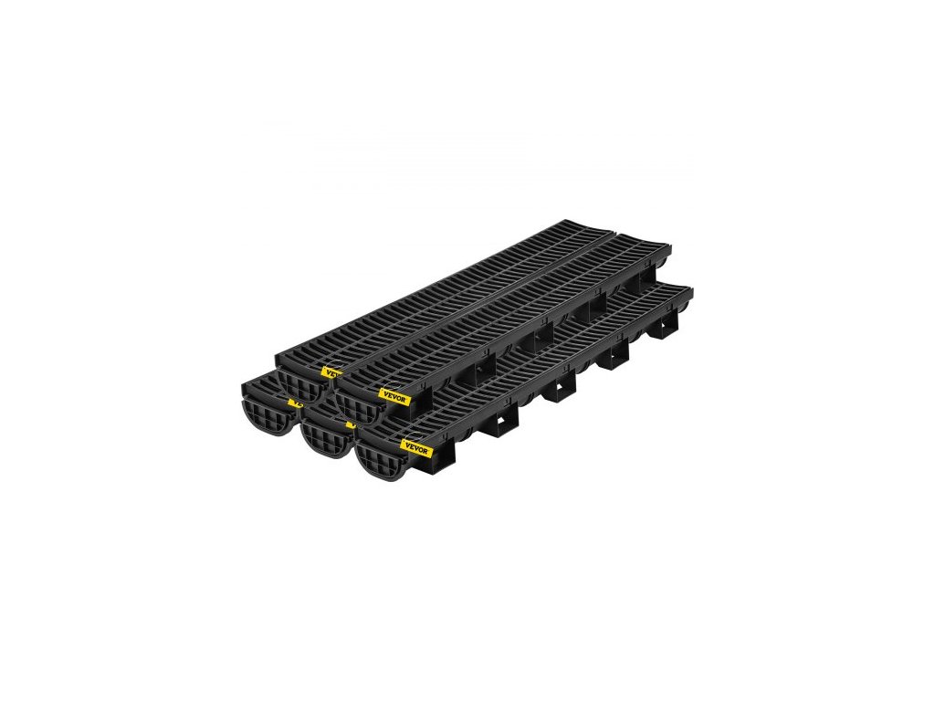 Systém odvodnění příkopů, kanálový odtok s plastovou mřížkou, HDPE odvodňovací příkop 14,5 x 8 cm, černý plastový garážový odtok, 5x39 rošt, s 5 koncovými krytkami, pro zahradu, příjezdovou cestu - 5 kusůBezproblémová instalace
