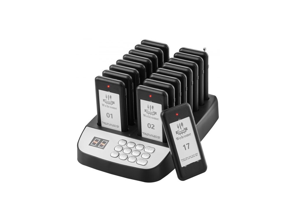 Systém pageru pro restaurace , bezdrátový signál pro frontu a čekání s dosahem 500 m, bzučáky pro volání hostů s vibracemi a blikáním, 16 bzučáků pro pojízdné občerstvení, kostely, školky a nemocniceVynikající výkon