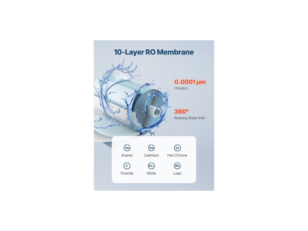 Systém reverzní osmózy , 600 GPD 10stupňová výměna vodního filtru pro reverzní osmózu, RO filtrační patrona po dobu 24 měsíců, snižuje obsah olova a chlóru, kompatibilní s vodním filtrem pod dřez SS-004Dlouhotrvající čerstvost