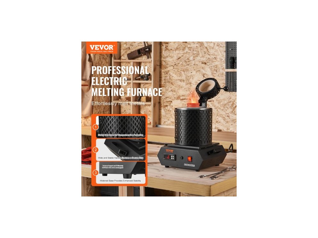 Tavicí pec na zlato , elektrická digitální tavicí pec o výkonu 1350 W, 2102 ℉/1150 ℃ s grafitovými kelímky o objemu 1 kg a 3 kg pro tavení zlata, stříbra, mědi a hliníku