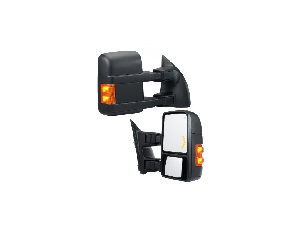 Tažná zrcátka , sada levého a pravého páru pro Ford F250 F350 F450 F550, rok výroby 2008-2016, elektricky vyhřívaná s blinkry, rovné a konvexní sklo, manuálně ovládané teleskopické sklápění, topení a odmrazování, černá