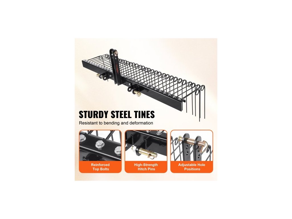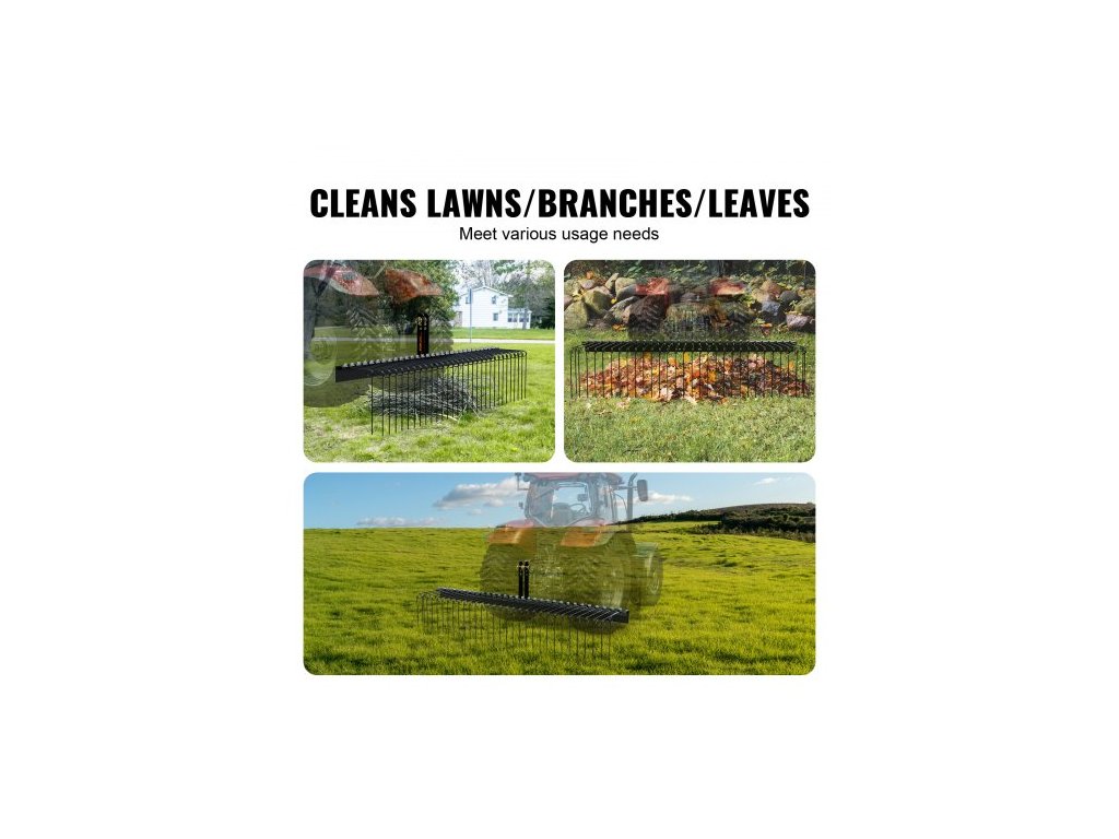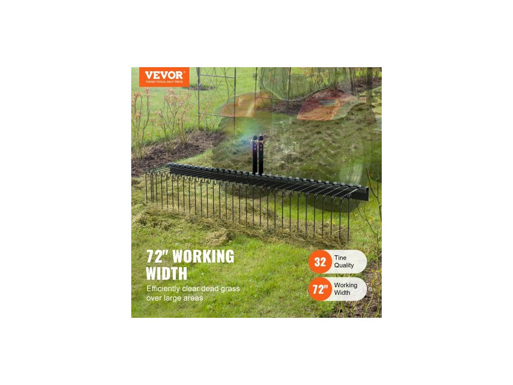Tažné hrábě na trávu 72"/183 cm, hrábě na odstraňování hlíny s 32 ocelovými hroty