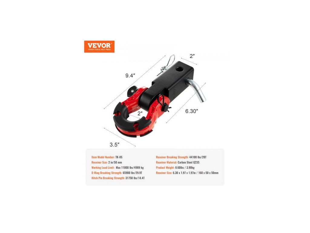 Materiál tažného zařízení: Uhlíková ocel Q235, Pevnost v tahu D-kroužku: 65900 lbs/29,9T,Číslo modelu: TK-8S,Hmotnost výrobku: 8,60 lbs/3,90 kg,Rozměry výrobku (tažné zařízení): 6,30 x 1,97 x 1,97 palce/160 x 50 x 50 mm,Pevnost tažného zařízení: 44100 20 tun, Velikost přijímače: 50 mm, Mezní pracovní zatížení: Max. 4989 kg, Pevnost tažného čepu v tahu: 14,4 tuny