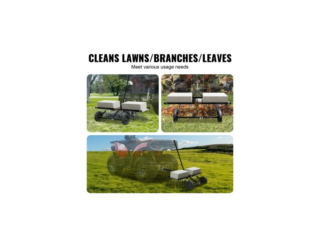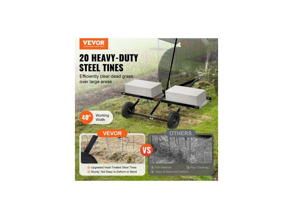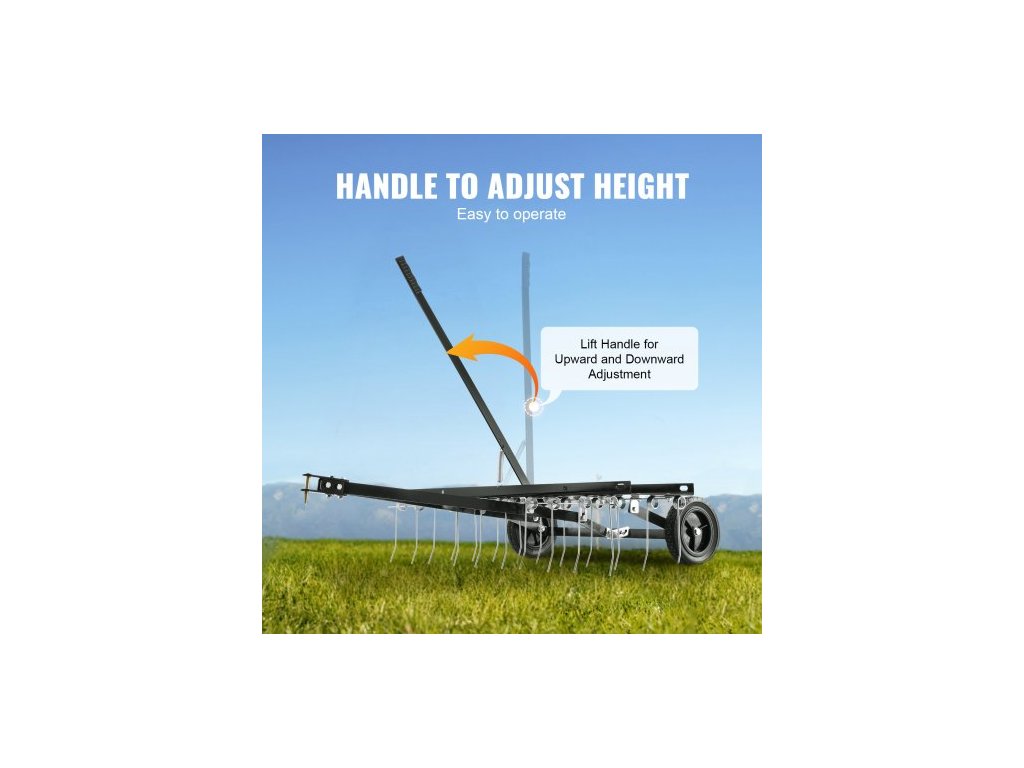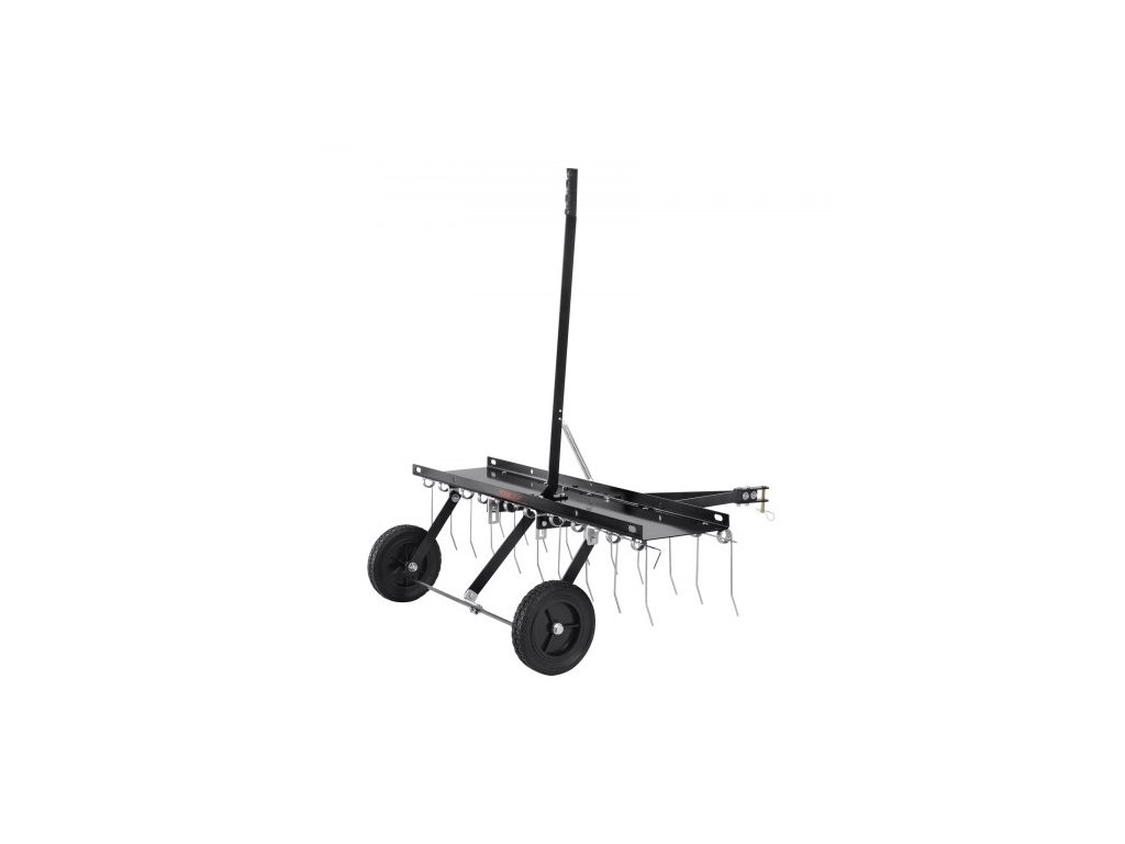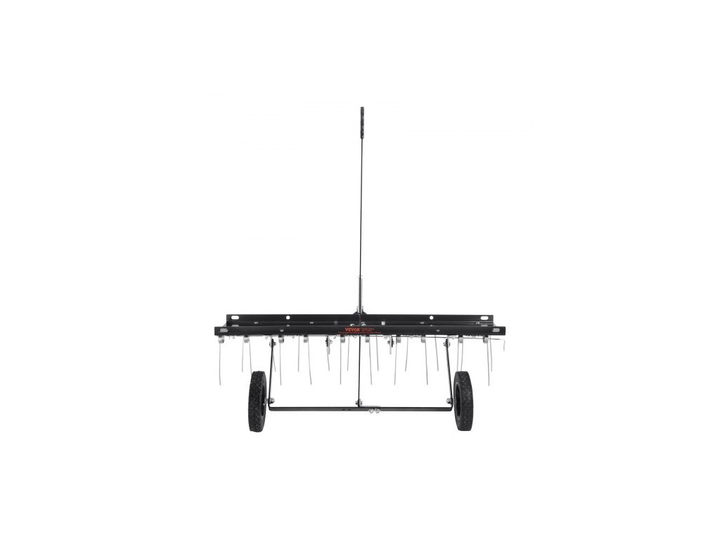 Tažný odstraňovač trávy, 40palcový tažný odstraňovač trávy s 20 pružinovými ocelovými hroty, hrábě na odstraňovač trávy pro čtyřkolku nebo sekačku, tažné hrábě na trávu se zvedací rukojetí pro zahradní a zemědělskou trávuOdolná konstrukce