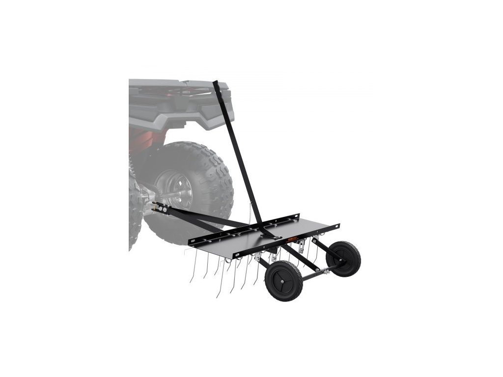 Tažný odstraňovač trávy, 40palcový tažný odstraňovač trávy s 20 pružinovými ocelovými hroty, hrábě na odstraňovač trávy pro čtyřkolku nebo sekačku, tažné hrábě na trávu se zvedací rukojetí pro zahradní a zemědělskou trávu