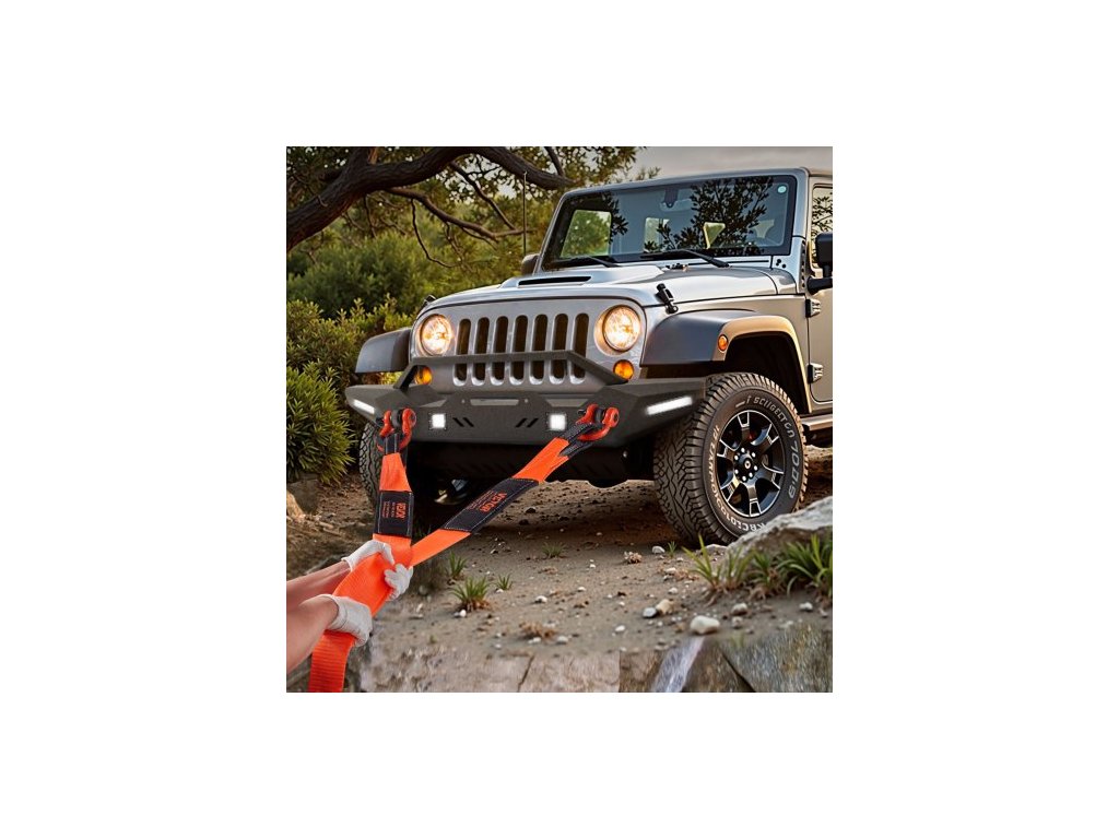 Tažný popruh 76,2 mm, 2,4 m, pevnost v tahu 16329 kg, trojitě zesílené smyčky, ochrana proti přetržení, prodlužovací popruh navijáku, odtahování a vyprošťování v terénu, odolnost proti extrémnímu počasí