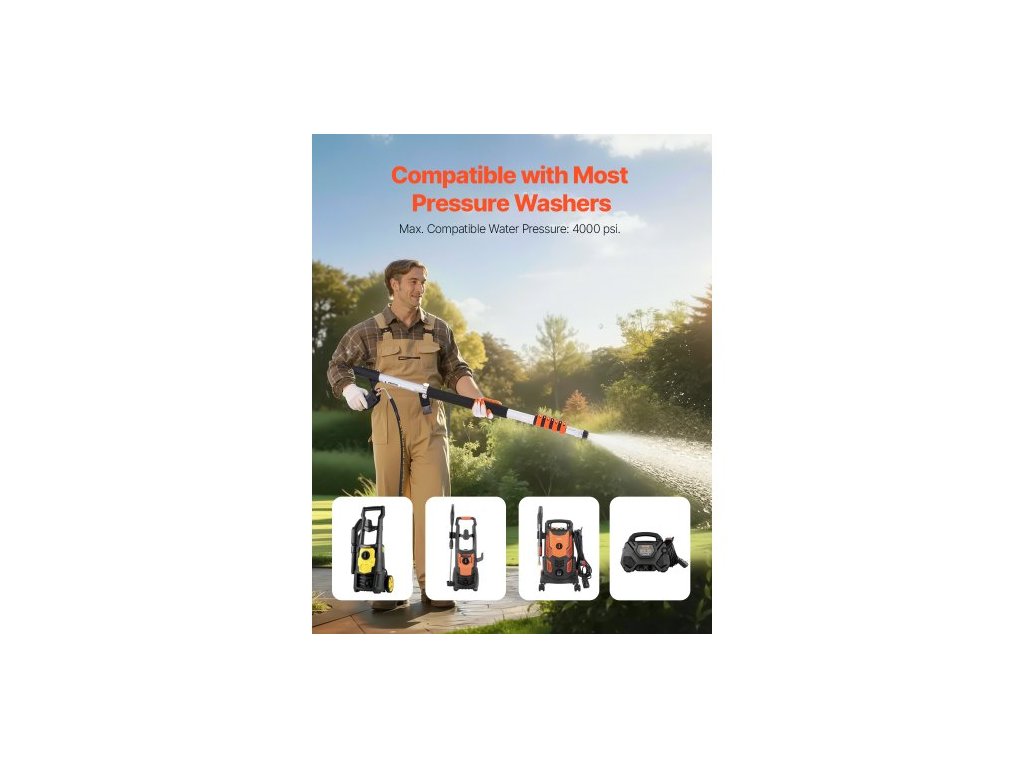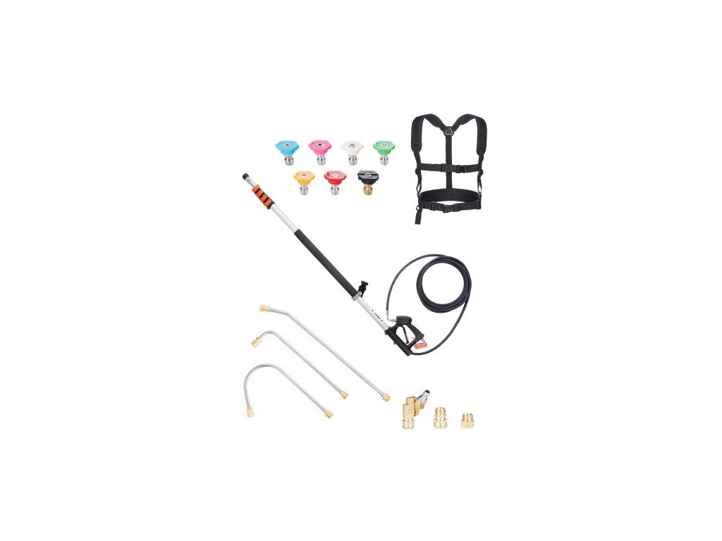 Teleskopická tyč pro tlakový čistič , 24 stop (7,1 m), 4000 psi, teleskopická postřikovací tyč s prodlužovacími tyčemi tlakového čističe, čistič okapů, otočná spojka, 7 trysek a nastavitelný podpůrný postroj