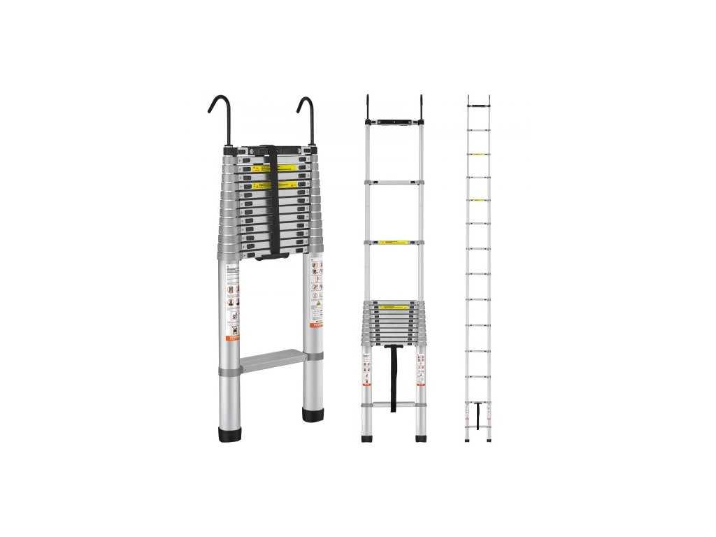 Teleskopický žebřík, hliníkový prodlužovací schůdek 563,9 cm, víceúčelový, přenosný