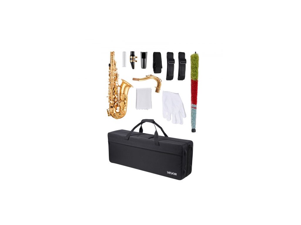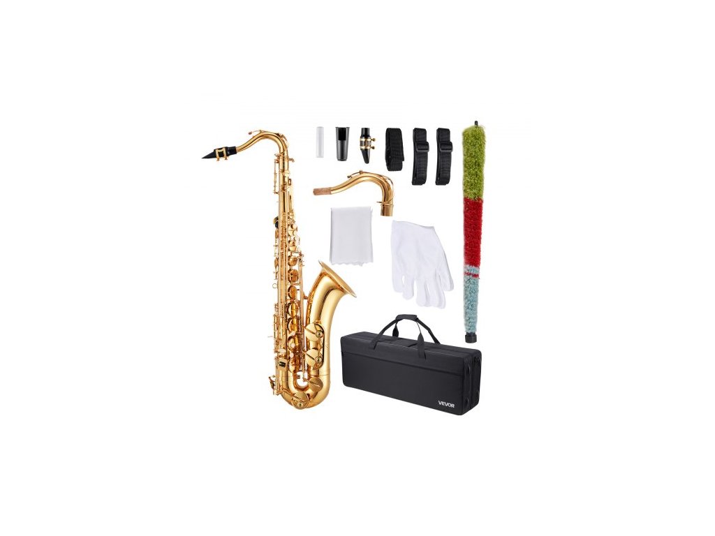 tenor saxofon, B♭, profesionální sada pro začátečníky na žesťový saxofon s přepravním pouzdrem, náustkem, popruhy, čisticím hadříkem, rukavicemi, popruhem na krk, sada pro tenor saxofon s 23 klávesami, pro začínající studenty, zlatáVšestranný zvuk pro každý žánr