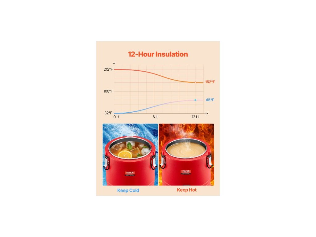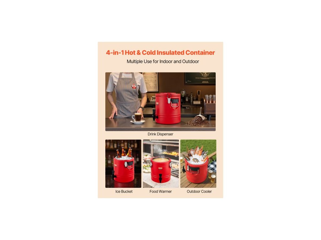 Termo dávkovač nápojů , termoservírovací dávkovač na horké a studené nápoje o objemu 3 galony/11,4 l s kohoutkem, chladicí konvice potravinářské kvality s vnitřním prostorem z nerezové oceli 304, pro venkovní použití v restauraci a na čaj/kávu