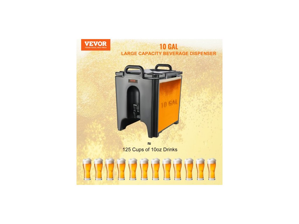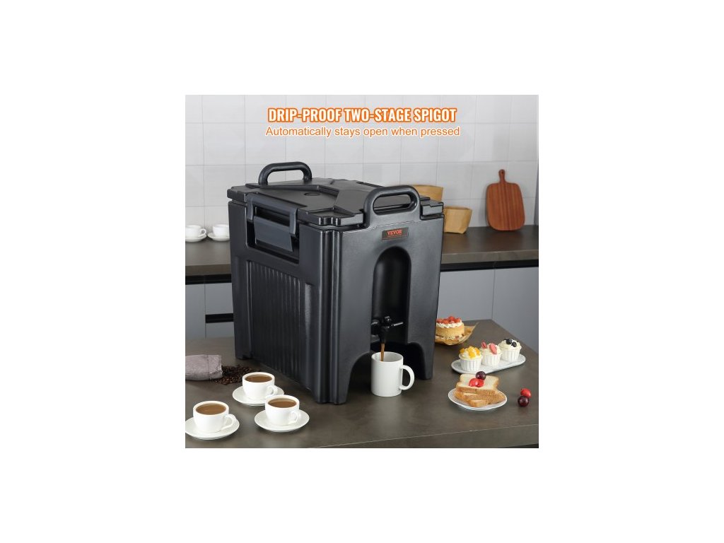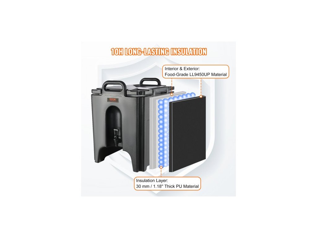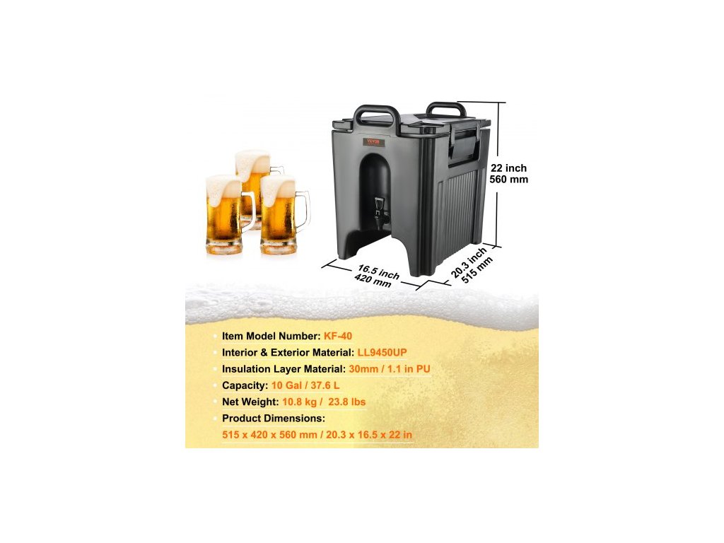 Výdejník nápojů s izolací, 37,9 l, potravinářský LL9450UP, servírovací talíř na teplé a studené nápoje, termální chladič s 3cm PU vrstvou, dvoustupňová rukojeť kohoutku, pro restaurace a prodejny nápojůProstorná kapacita