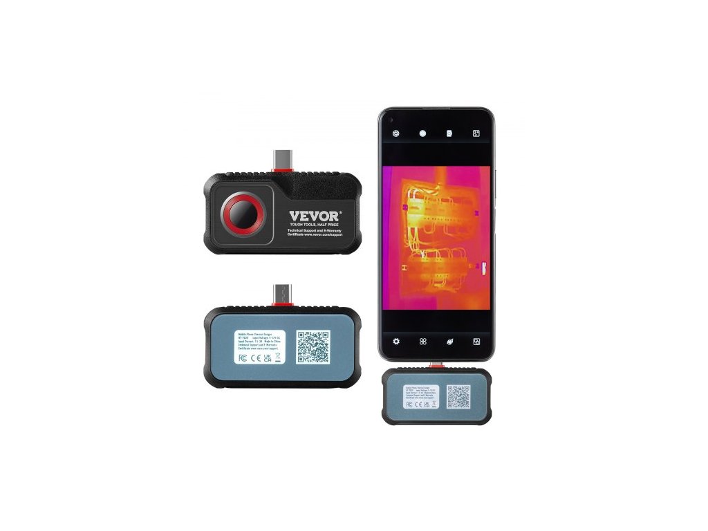 Termokamera pro Android, IR rozlišení 256 x 192 s vizuální kamerou, obnovovací frekvence 25 Hz, termokamera pro chytrý telefon/tablet, teplotní rozsah -4–1022 °F, IP54Působivé IR rozlišení